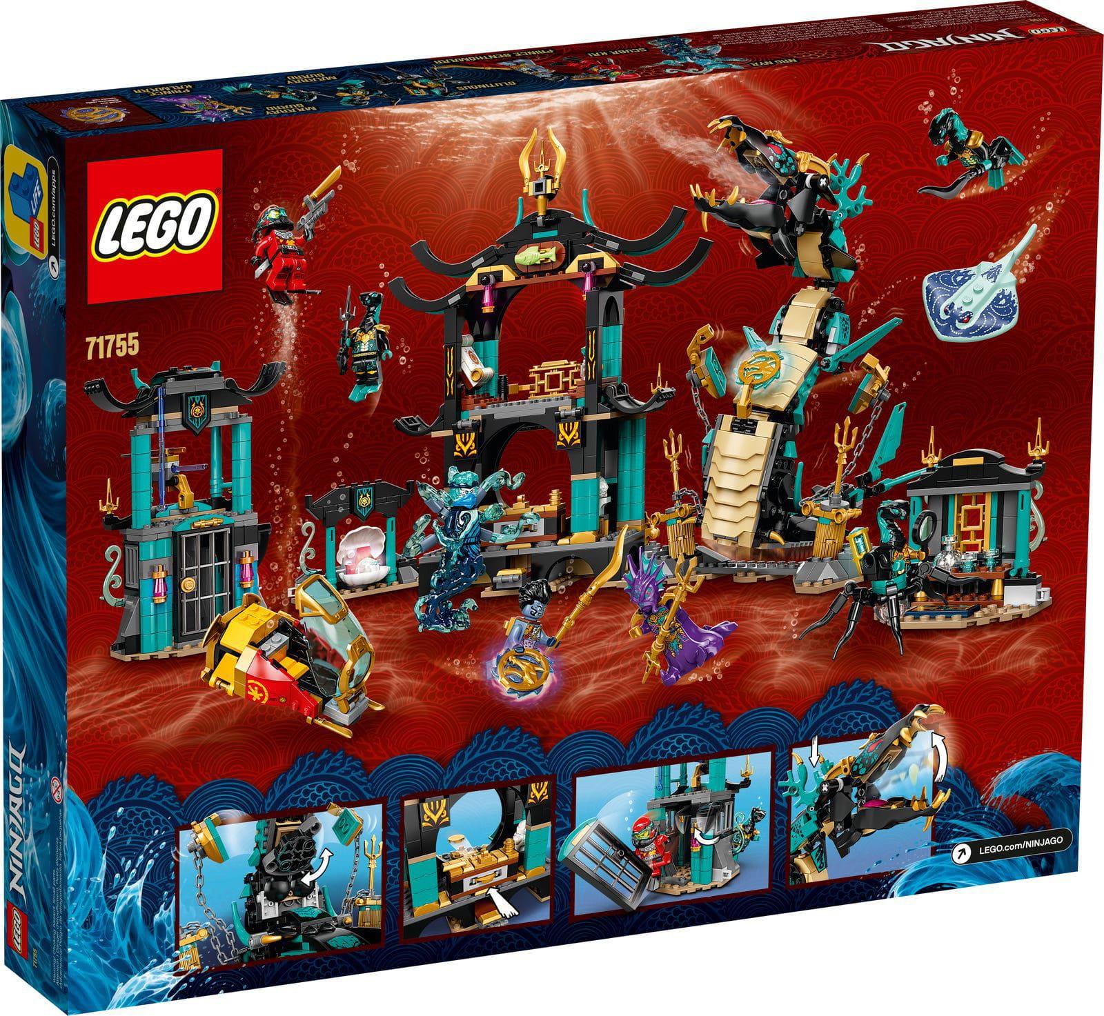 Wyjątkowy zestaw Świątynia Bezkresnego Morza (71755) pozwala fanom ninja odgrywać podwodne przygody z najnowszego sezonu serialu LEGO® NINJAGO®. W komplecie jest laboratorium, więzienie, łódź podwodna, płaszczka i spętany łańcuchami wąż morski.