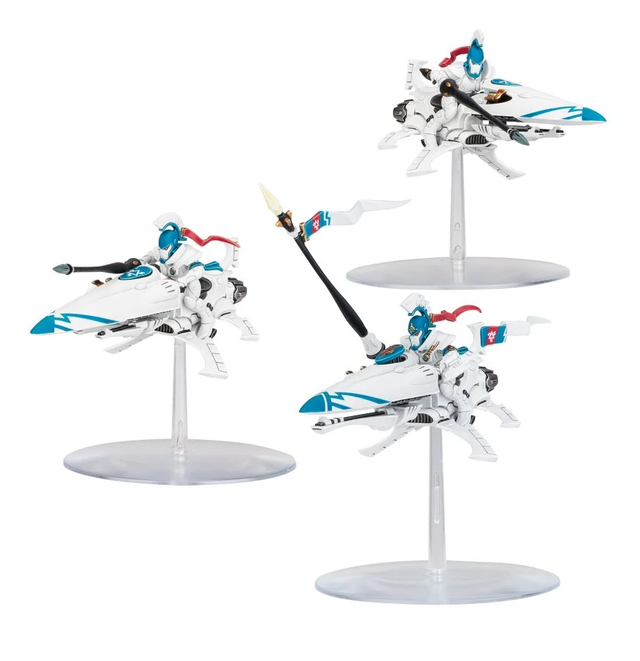 Ten zestaw umożliwia zbudowanie jednej jednostki Lśniących Włóczni, z których każda jest uzbrojona w lancę laserową i jeździ na motocyklu odrzutowym wyposażonym w dwie katapulty shuriken. Jeden model można zbudować jako Egzarchę Lśniących Włóczni, który może być uzbrojony w gwiezdną lancę lub szablę wzorcową, a także ochronną błyszczącą tarczę. Motocykl odrzutowy Exarchy może być wyposażony w śmiercionośne działo shuriken, a oni mają do wyboru cztery głowy, podczas gdy każda Lśniąca Włócznia ma do wyboru głowy w hełmie lub bez hełmu.