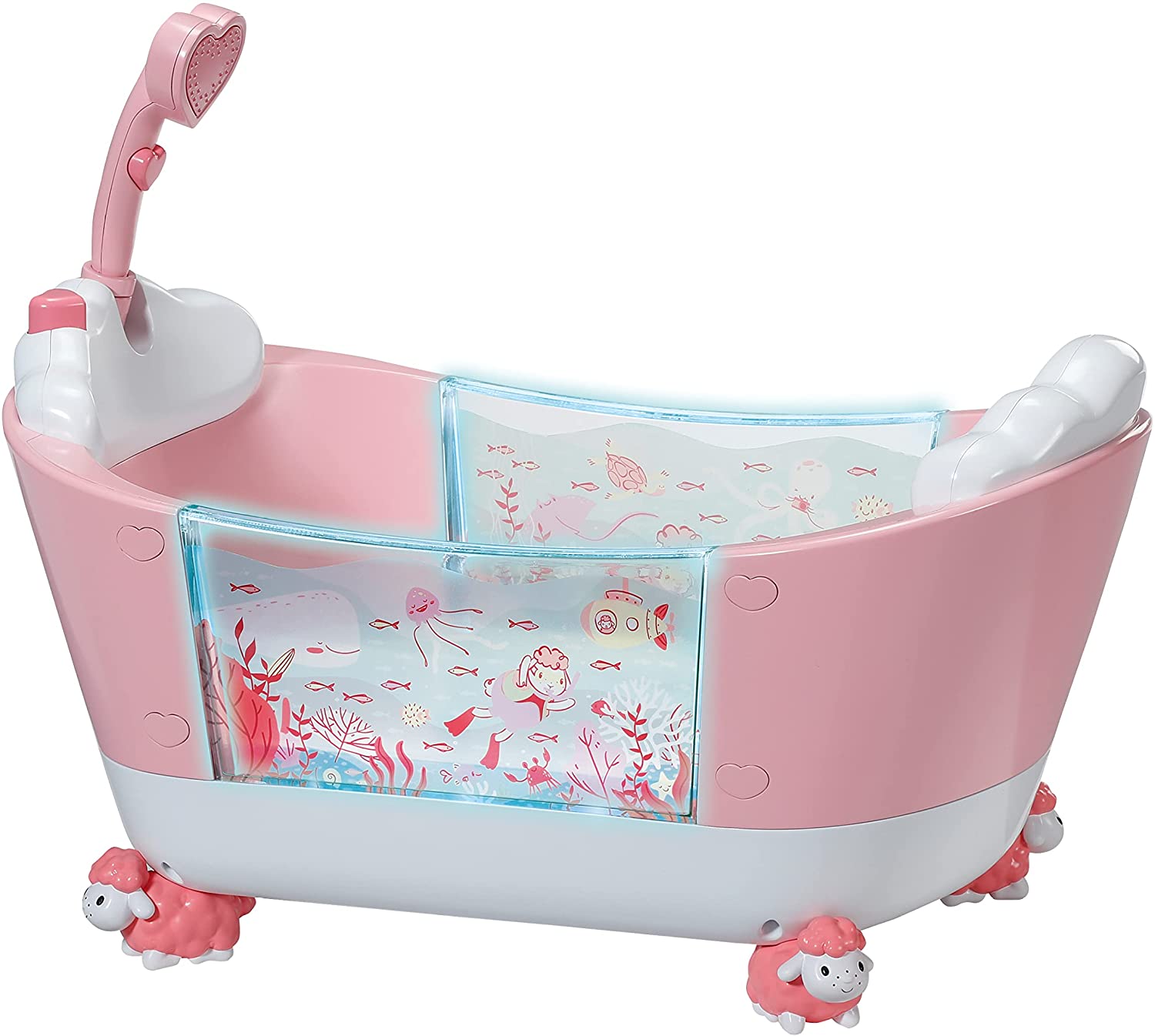 Wyjątkowej zabawie w kąpieli towarzyszą przeróżne odgłosy wody. Ze względu na znajdującą się wewnątrz elektronikę, lalka nie może w żadnym wypadku ulec zamoczeniu. Kąpanie jest częścią codziennej rutyny dziecka - tak jak karmienie, zmiana pieluch, spacery, zabawa i pora snu. Jeśli ktoś napełni pustą wannę wodą, to spłynie ona z powrotem przez otwór.