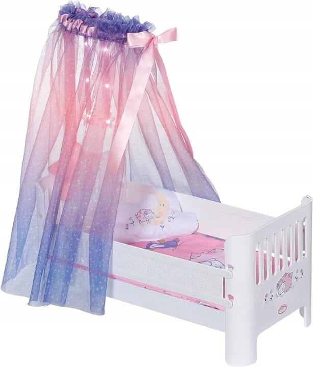 Łóżko Baby Annabell Sweet Dreams z baldachimem i kołysanką. W zestawie materac, koc i poduszki.