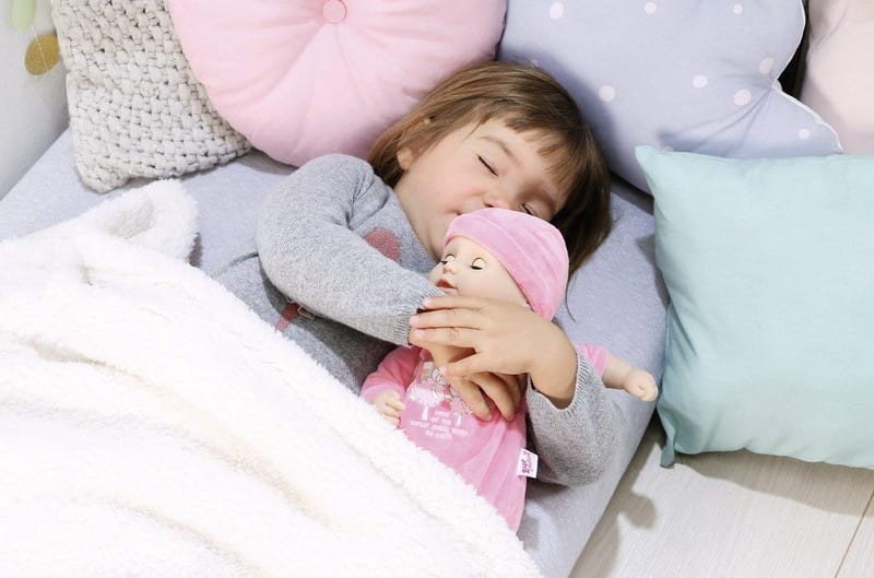 Lalka w różowych śpioszkach z buteleczką
