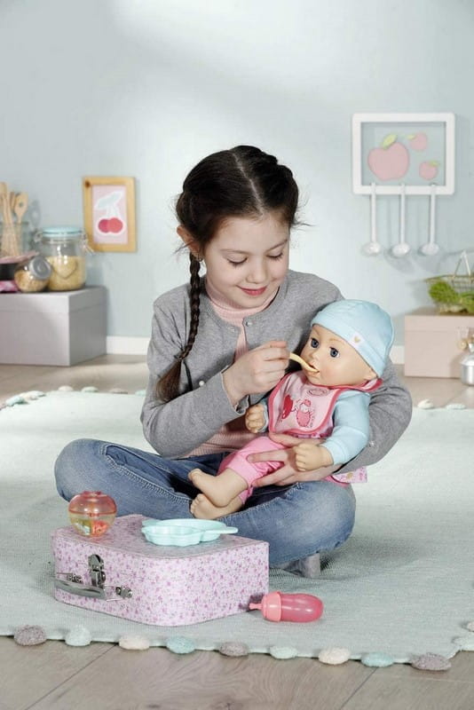 Baby Annabell przyjemność karmienia z realistycznymi funkcjami: może spać, jeść, wykonywać odpowiednie ruchy jamy ustnej, wydaje dźwięki i może korzystać z toalety.