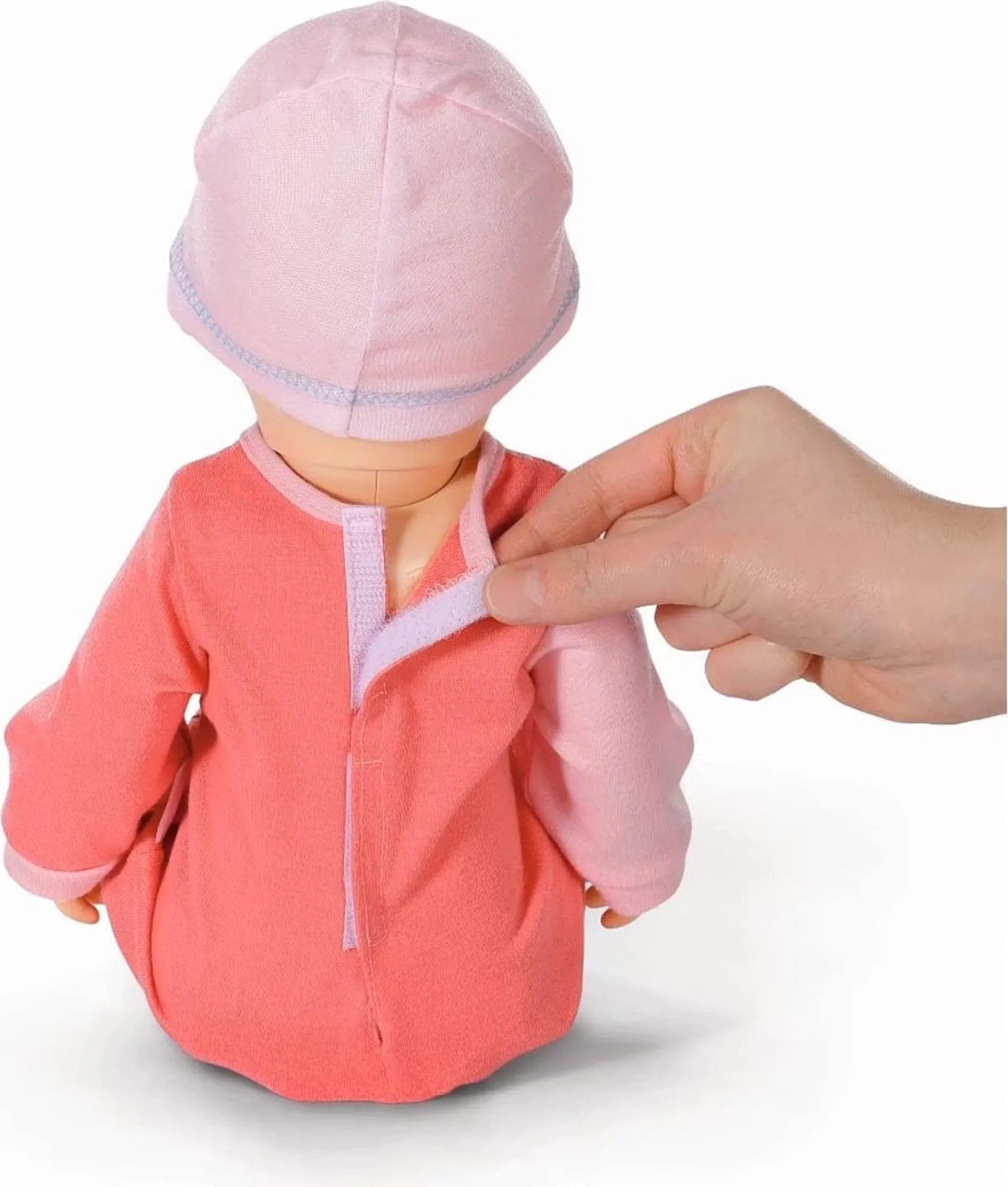 W zestawie strój i baterie: Emily jest dostarczana z uroczym kombinezonem i czapką. Jest również wyposażona w 3 baterie AA, dzięki czemu zabawa może rozpocząć się od razu!