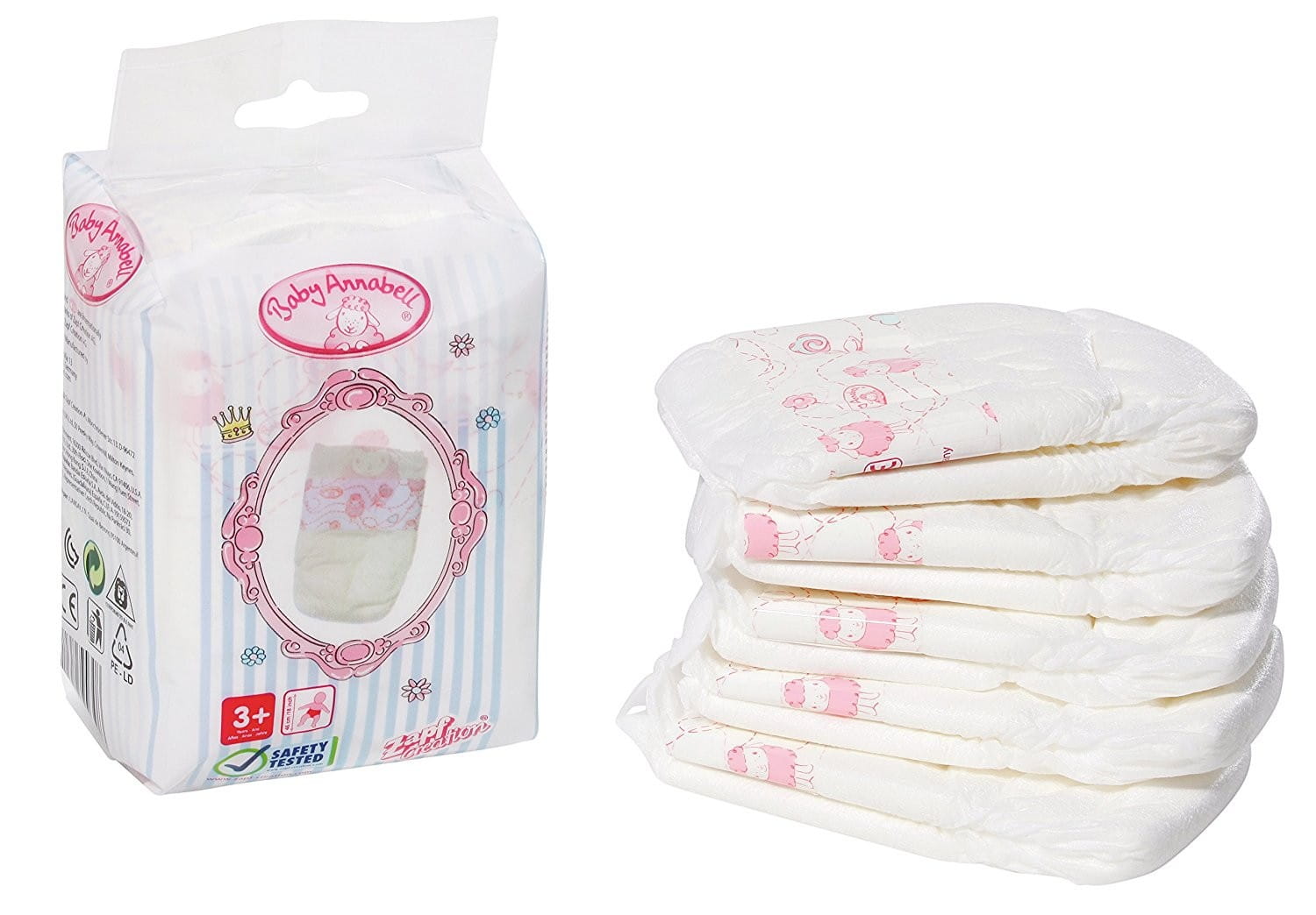 Ponieważ każda kochająca i troskliwa mama dba o to by jej dzidziuś był zawsze radosny i najedzony, a Baby Born naprawdę je - przydatna z pewnością okaże się specjalne pieluchy, pampersy 5 szt. dla lalki Baby Annabell 46 cm