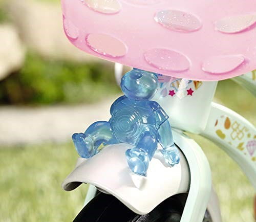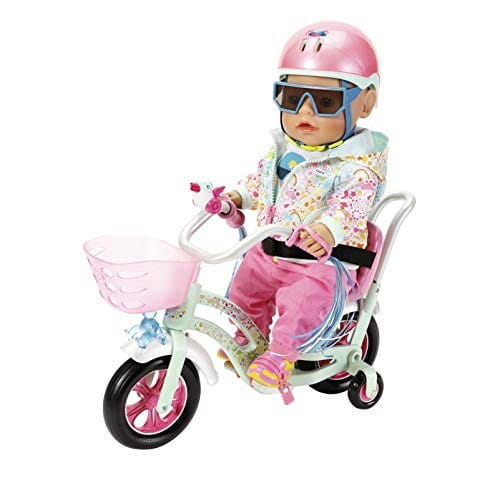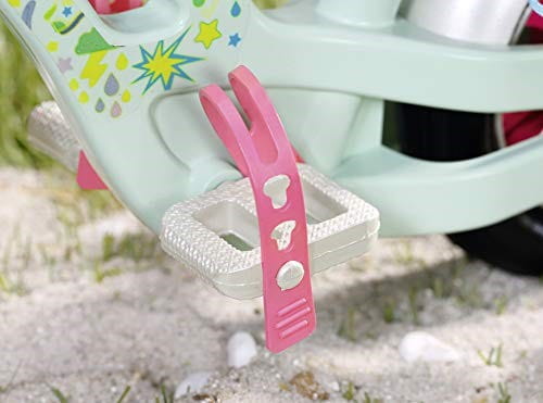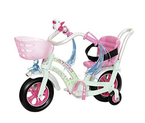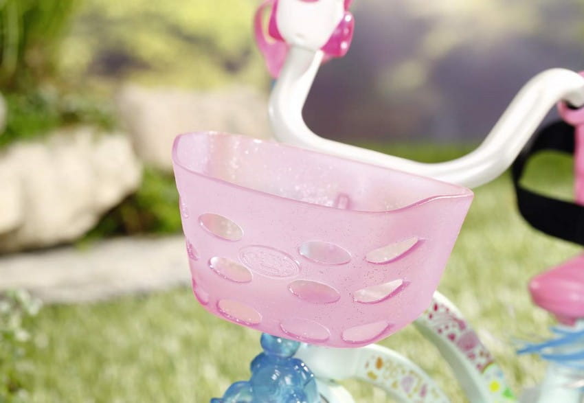 Lalka Baby Born i jej rodzeństwo, uwielbiają jazdę na tym wesołym rowerze. Rowerek posiada kółka boczne, pas bezpieczeństwa oraz pedały. Zestaw zawiera światełko, dzwoneczek oraz koszyk na zabawki.