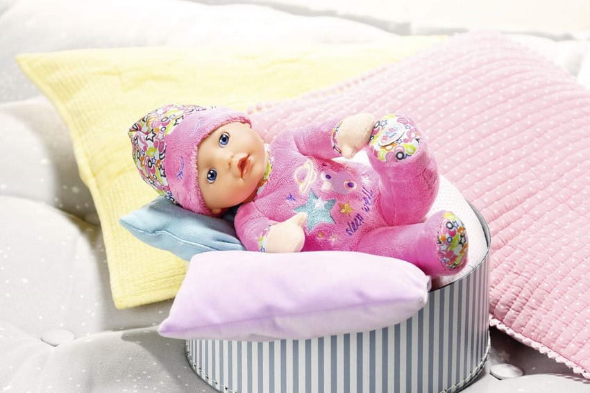 Na czas przytulania: głowa jest wykonana z miękkiego winylu i idealnie nadaje się do małych dłoni dziecka. Mała lalka może także zostać zabrana na spacer w wózku lub w foteliku dziecięcym.