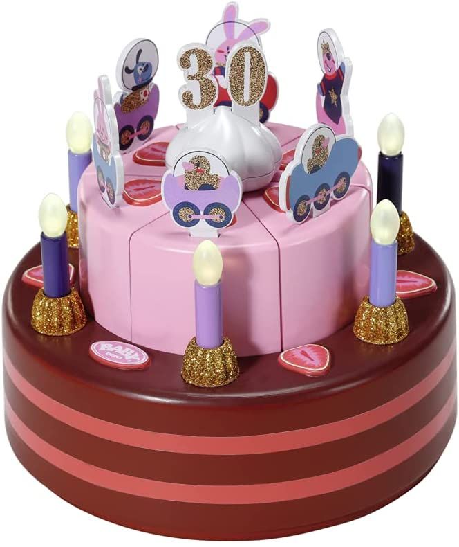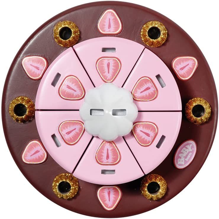 Tort ma dwa piętra i jest podzielony na 6 kawałków, z których każdy można przystroić cyframi i obrazkami. W chwili gdy BABY born dmucha w świeczki, tort odtwarza urodzinową melodię.