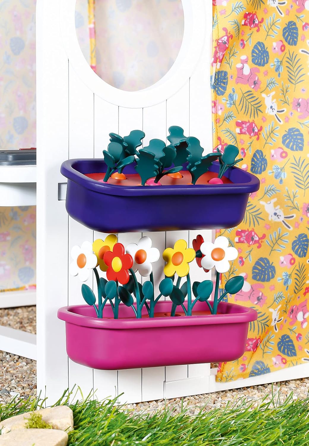 Zbieranie warzyw: dziecko i lalka mogą razem uprawiać i zbierać warzywa i kwiaty w 2 skrzynkach na kwiaty
