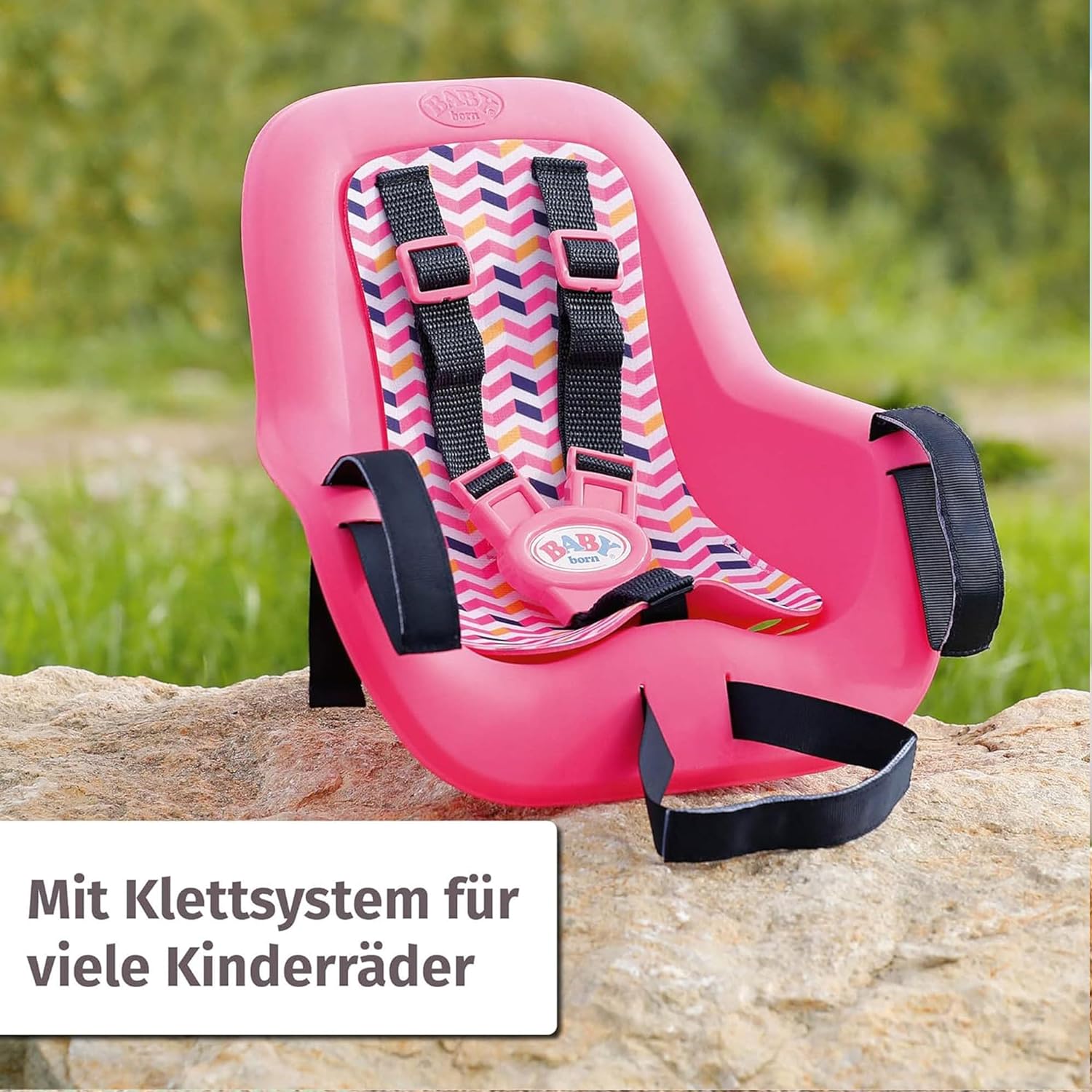 Bezpieczne mocowanie dla lalki: system pasów z 3-punktowym paskiem i różową klamrą utrzymuje dziecko w stabilnej pozycji siedzącej, nawet jeśli jest wyboisty lub krzywizny są bardzo ciasne.