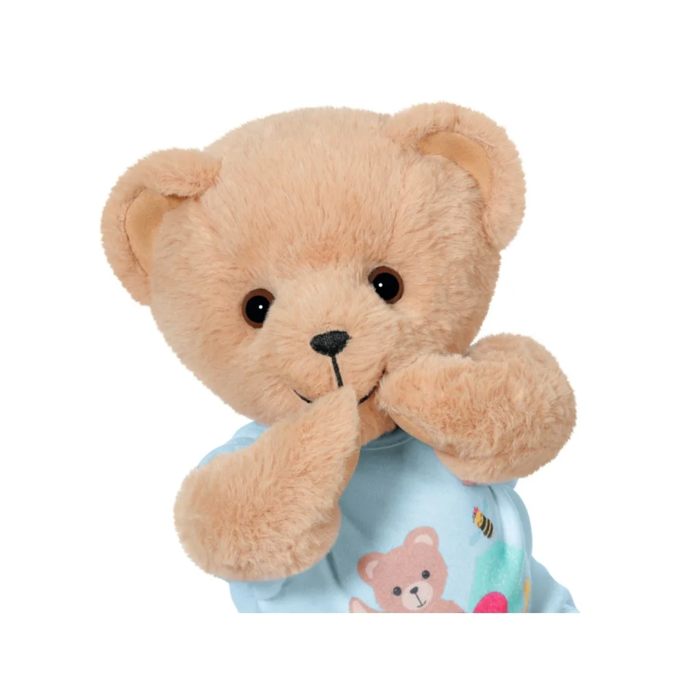 Maskotka ma uroczy uśmiech i mięciutkie futerko. Ładne, niebieskie ubranko możesz łatwo zamienić na stroje Baby Born 43 cm, a zabawę urozmaicić akcesoriami dla lalki!