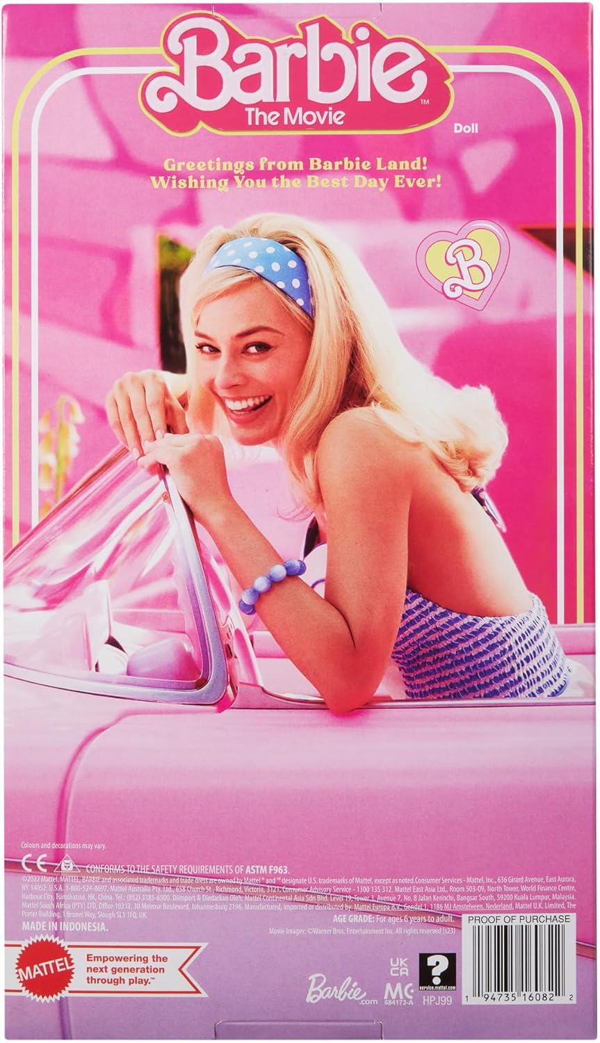Filmowa lalka Barbie Margot Robbie to praktycznie postać wyjęta z dużego ekranu. Barbie ma strój na wzór tego, który aktorka nosiła w filmie. Błyszczący złoty kombinezon skrzy się pod różnymi kątami i wspaniale oddaje klimat imprezy w stylu disco.