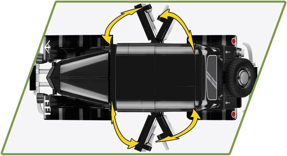 Zestaw zawierający 300 elementów to nie tylko samochód z obracającymi się kołami, otwieranymi drzwiami, ale również ekskluzywna klockowa podstawka z laserowym grawerem oraz figurki postaci historycznych. Zestaw zawiera wyłącznie wysokiej jakości nadruki, które nie ścierają się nawet w trakcie intensywnego użytkowania.