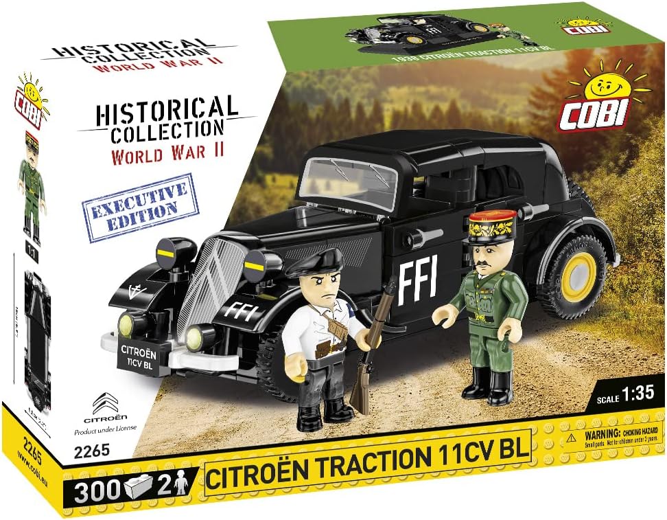 Samochód Citroen Traction 11CV BL został starannie odtworzony z klocków konstrukcyjnych COBI. Auto uzupełnia bogatą kolekcję historycznych pojazdów wydanych w modelarskiej skali 1:35.