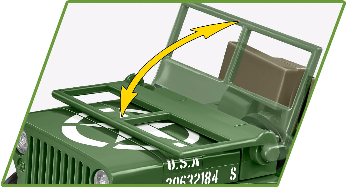 Najpopularniejszy na świecie samochód terenowy został zaprojektowany w skali 1:35 i składa się ze 132 elementów. Klockowe auto jest wyposażone w ciężki karabin maszynowy oraz akcesoria. Koła z gumowymi oponami obracają się i można poruszać samochodem podczas zabawy. Do zestawu dołączona jest figurka przedstawiająca żołnierza amerykańskiej 101 Dywizji Powietrznodesantowej (Screaming Eagles). Na pojeździe i figurce znajdują się wysokiej jakości nadruki, które są wzorowane na historycznych oznaczeniach zaczerpniętych bezpośrednio z zabytkowego samochodu należącego do firmy COBI! Nie pominęliśmy nawet takich detali jak naszywki z charakterystycznym orłem na ramieniu żołnierza! Zestaw doskonale uzupełnia bardzo bogatą serię Historical Collection WWII od COBI!