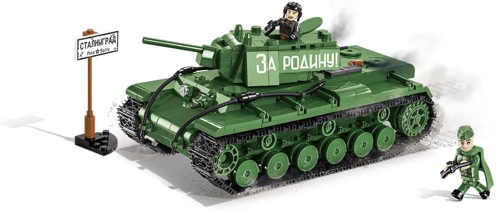 Odwzorowany z klocków konstrukcyjnych model słynnego radzieckiego czołgu KV-1 zbudujesz z 656 klocków. Ruchoma trakcja gąsienicowa, obrotowa wieża, otwierane kalpy silnika oraz włazy, nadruki, radzieckie oznaczenia oraz figurka czołgisty i żołnierza sprawiają, że pojazd jest nie tylko modelem ekspozycyjnym, ale również sprawdzi się jako zabawka dla dużych chłopców. Figurki wyposażone są w akcesoria takie jak karabin, lornetka, pelerynka i nakrycia głowy.