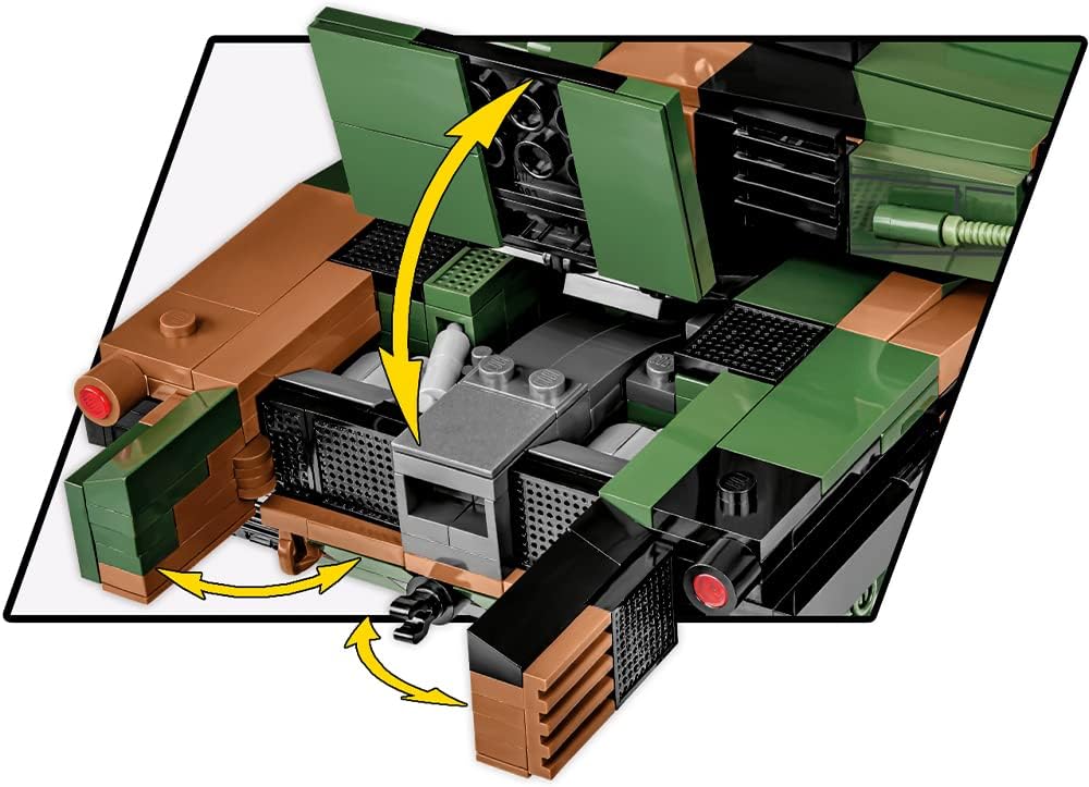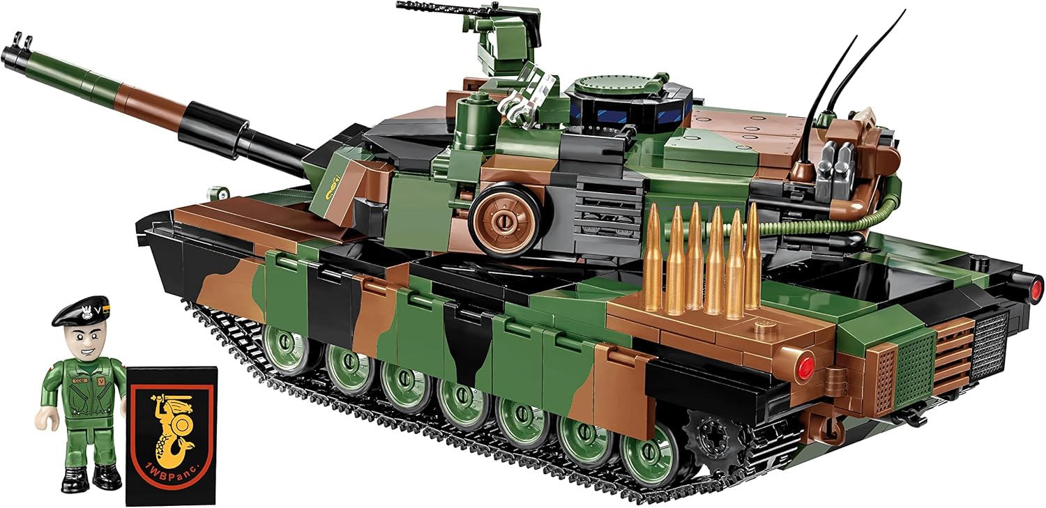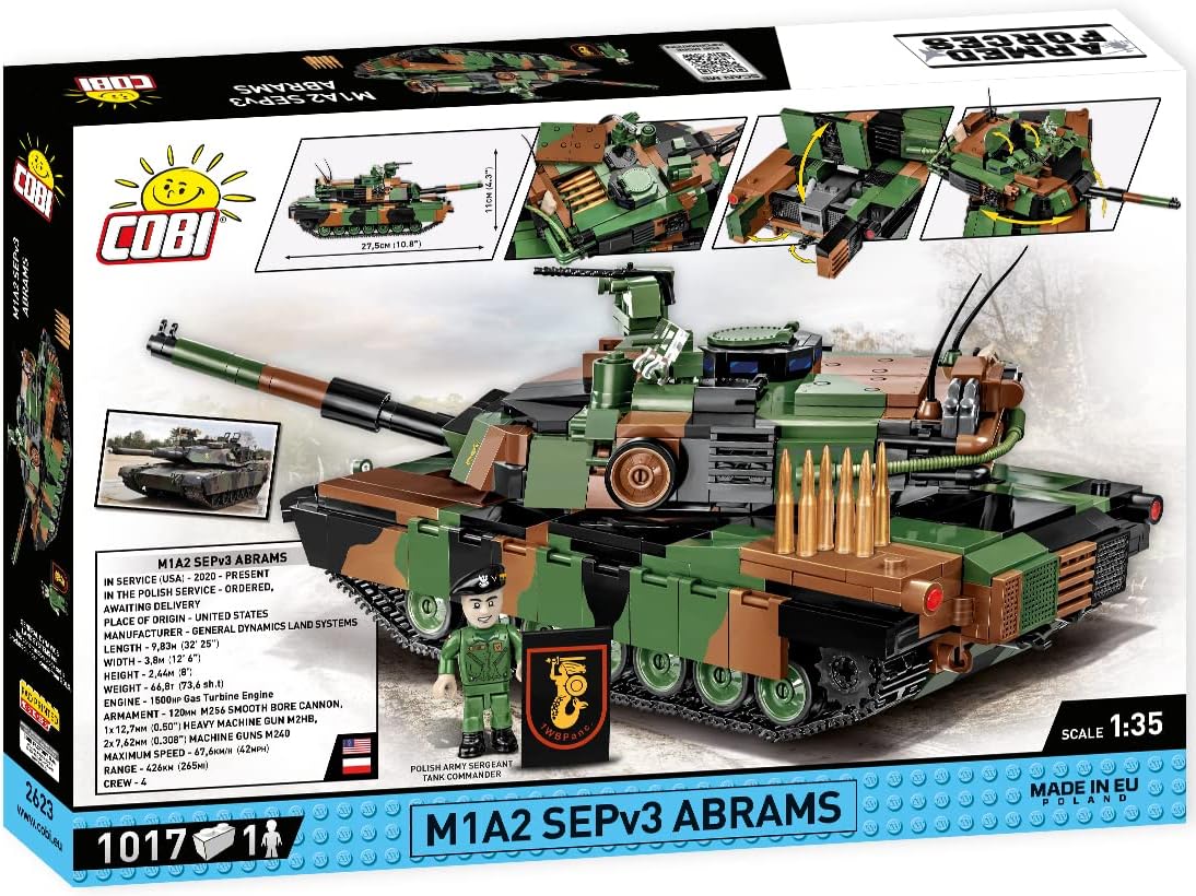 Najnowocześniejszy wariant czołgu M1A2 SEPv3 Abrams w barwach 1 Warszawskiej Brygady Pancernej imienia Tadeusza Kościuszki został opracowany na licencji amerykańskiego przedsiębiorstwa zbrojeniowego General Dynamics Land Systems. Polska zamówiła 250 czołgów tego typu, ich dostawy potrwają do 2026 roku. Już teraz możesz zobaczyć, jak będą wyglądały te supernowoczesne czołgi w Wojsku Polskim! Klockowy model został odwzorowany w rewelacyjnej skali 1:35 z dbałością o zachowanie maksymalnej ilości detali. Stało się to możliwe dzięki zastosowaniu nowych klocków ze wciąż rosnącego katalogu elementów, które tworzy firma COBI. Na modelu znajdują się wysokiej jakości nadruki przedstawiające charakterystyczną “Syrenkę” 1 Warszawskiej Brygady Pancernej, tablice rejestracyjne oraz elementy kamuflażu i oprzyrządowania czołgu. Pojazd posiada działającą trakcję gąsienicową, otwierane włazy i dostęp do klockowego silnika, który znajduje się pod klapą serwisową. Wieża pojazdu i lufa są ruchome. Czołg Abrams został wzbogacony o dodatki takie jak: klockowy worek, pakunki w koszu, amunicję oraz dwa karabiny maszynowe. Do zestawu dołączona jest starannie zaprojektowana figurka sierżanta z 1 Warszawskiej Brygady Pancernej w kombinezonie czołgowym oraz z charakterystyczną odznaką na berecie.