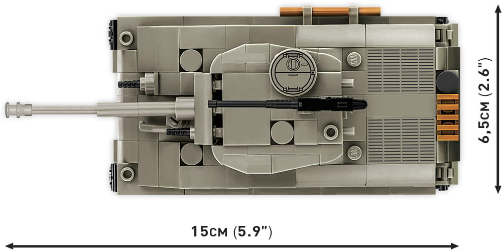 Miniaturowy pojazd z klocków konstrukcyjnych COBI został wyprodukowany w modelarskiej skali 1:48. Na uwagę zasługuje zastosowany nowy kolor oliwkowy. Czołg jest łatwy w budowie, idealnie nadaje się na początek przygody z polskimi klockami konstrukcyjnymi COBI. Posiada ruchome działo, obracającą się wieżę i działającą trakcję gąsienicową. Wszelkie detale graficzne są wysokiej jakości nadrukami, które nie ścierają się nawet w trakcie intensywnego użytkowania. Zaletą jest konstrukcja, która w wyjątkowy sposób odzwierciedla oryginalne kształty swego historycznego pierwowzoru. Model czołgu Sherman E8 znakomicie uzupełnia naszą kolekcję miniaturowych czołgów wykonanych w modelarskiej skali 1:48. Dzięki naszej małej serii Twoja kolekcja zmieści się wszędzie! Nasze czołgi są idealne dla dojrzałych pasjonatów techniki wojskowej oraz wszystkich, niezależnie od wieku, którzy kochają historię i budowanie!