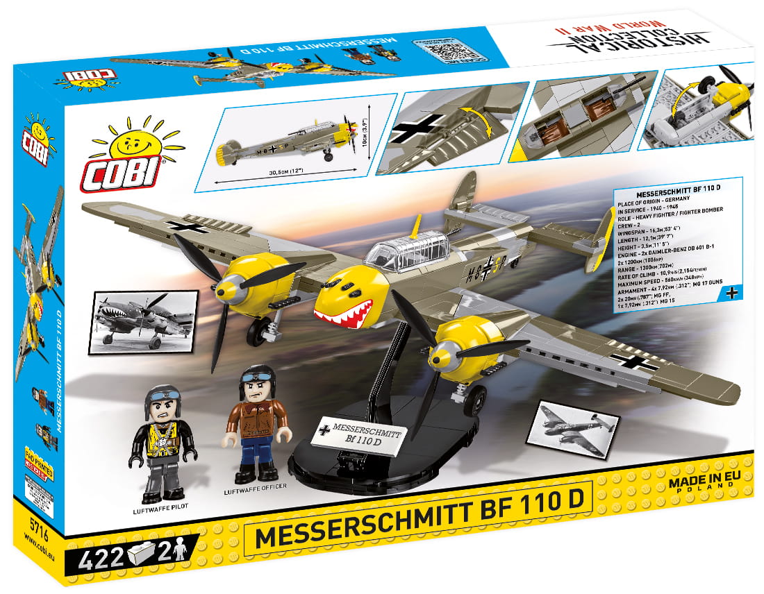 Model z klocków konstrukcyjnych posiada wiele ruchomych elementów takich jak obrotowe koła z gumowymi oponami, ruchome śmigła i lotki. W kabinie możemy umieścić dwie pełnowymiarowe figurki pilotów. Klockowy model został wyprodukowany w przepięknym malowaniu, jakie wykorzystywało w trakcie operacji nad Morzem Śródziemnymi i w kampanii greckiej. Klocki zostały pokryte wysokiej jakości nadrukami, które nie ścierają się nawet w trakcie intensywnego użytkowania. To świetny model dla wszystkich pasjonatów lotnictwa. Dzięki wiernie odwzorowanym proporcjom i detalom samolotu model znakomicie sprawdzi się jako ozdoba każdej kolekcji młodego i dorosłego pasjonata historii oraz lotnictwa. Całość zestawu uzupełnia elegancka klockowa podstawka ekspozycyjna i tabliczka z nazwą modelu.