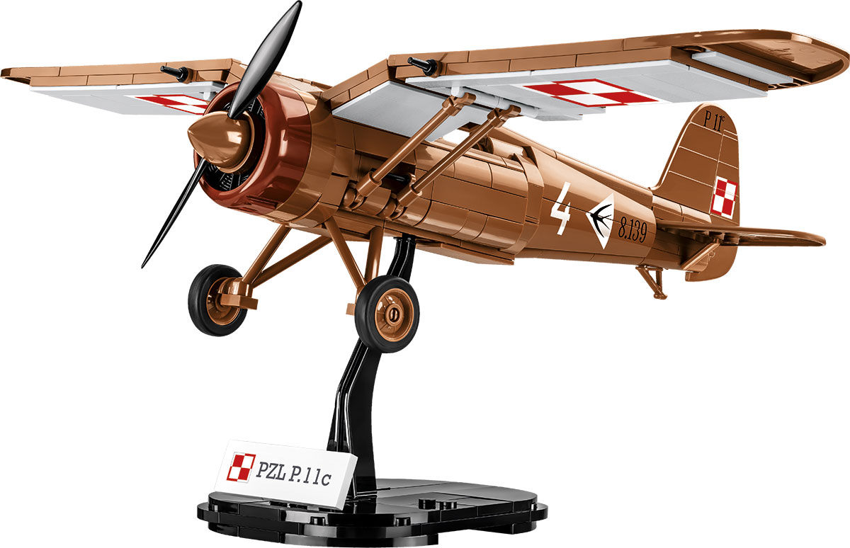 Klockowy myśliwiec PZL P.11c został starannie opracowany w skali 1:32 pasującej do reszty Historical Collection i ma 34 cm rozpiętości skrzydeł oraz 24,5 cm długości. Model składa się z 320 wysokiej jakości elementów, wśród których są również liczne klocki z trwałymi nadrukami. Funkcjonalności samolotu to: ruchome śmigło, ruchome lotki na skrzydłach, możliwość montażu 2 lub 4 karabinów maszynowych (opcja wyboru), dostęp do kabiny pilota, w której można umieścić figurkę zawierającą dwustronne nadruki. Na szczególną uwagę zasługują nadruki z szachownicami znajdujące się na spodzie skrzydeł! W komplecie znajduje się również klockowa podstawka ekspozycyjna z miejscami do wpięcia pilota oraz tabliczki z nazwą modelu. Przepiękny historyczny samolot to pozycja obowiązkowa dla entuzjastów historii, lotnictwa i polskiej techniki wojskowej! Jest idealny do kolekcjonowania! Budowa nie sprawia problemu dzięki intuicyjnej i przejrzystej instrukcji. Buduj historię, klocek po klocku!
