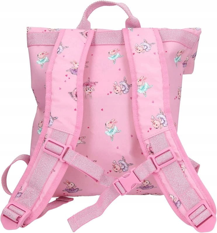 Ten uroczy plecak w różowym designie Księżniczka Mimi z nadrukowanym zajączkiem baletowym jest idealnym towarzyszem dla przedszkolaków lub opiekunek do dzieci. Uroczy plecak o wymiarach ok. 41 x 31 x 1,5 cm zapewnia wystarczająco dużo miejsca na napój, pudełko na lunch i inne akcesoria. Posiada 1 dużą komorę główną, którą można złożyć i zamknąć na rzep. Wewnątrz znajduje się mała przegródka zapinana na zamek. Wyściełane szelki i stabilizujący pas piersiowy zapewniają wygodę noszenia. Plecak dziecięcy wykonany jest w 100% z poliestru z zmywalną powłoką TPU.