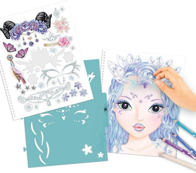 Fantastyczna zabawa podczas malowania: „Stwórz swoją fantastyczną twarz” autorstwa FANTASYModel! Kolorowanka zawiera 40 stron, 3 czarujące szablony malarskie, 3 kredki i 1 arkusz naklejek na piękne szczegóły.