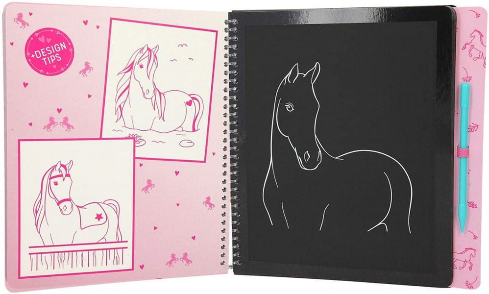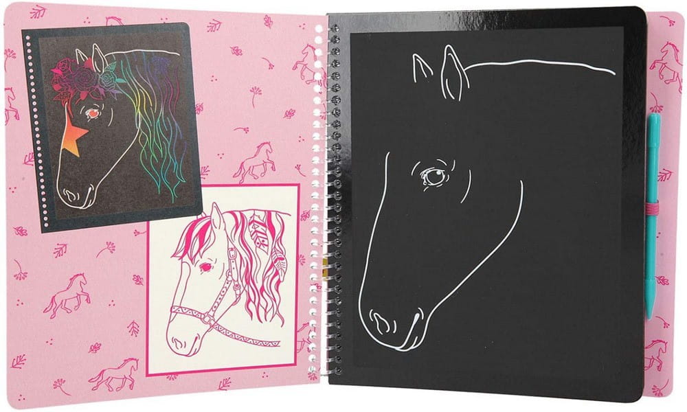 • Łącznie z pisakiem do zdrapywania motywu, wiązanie pierścieniowe ułatwia przewracanie