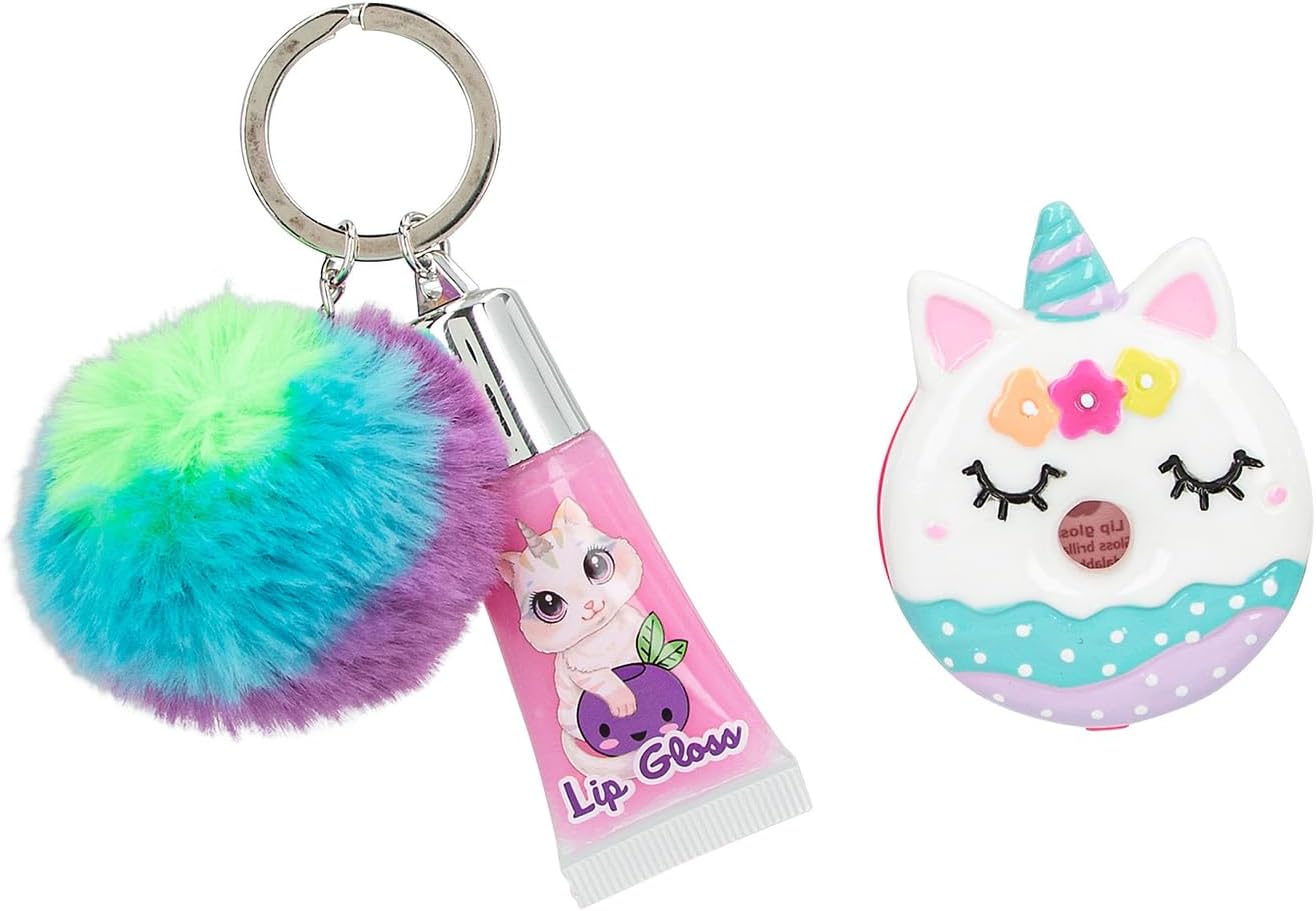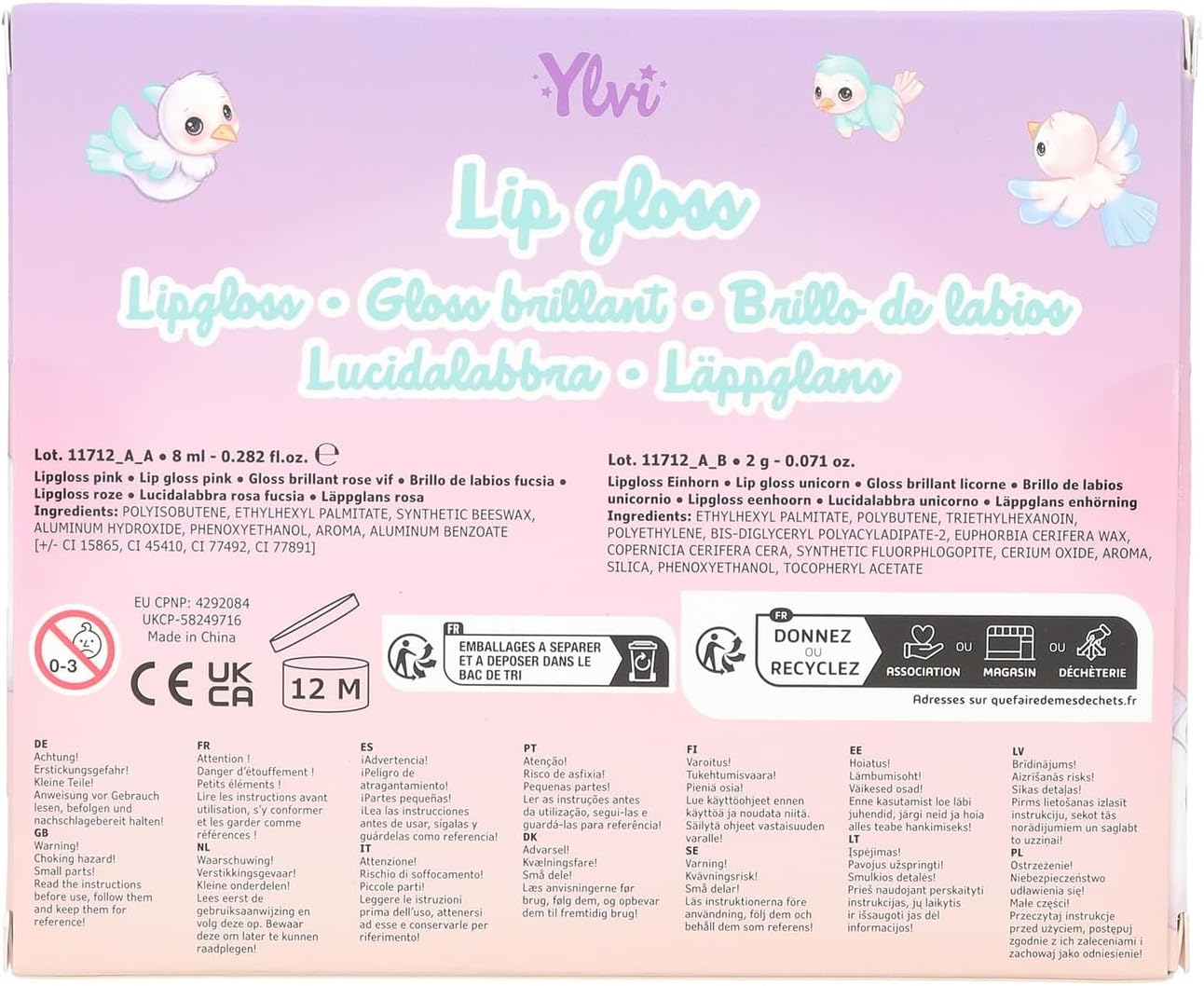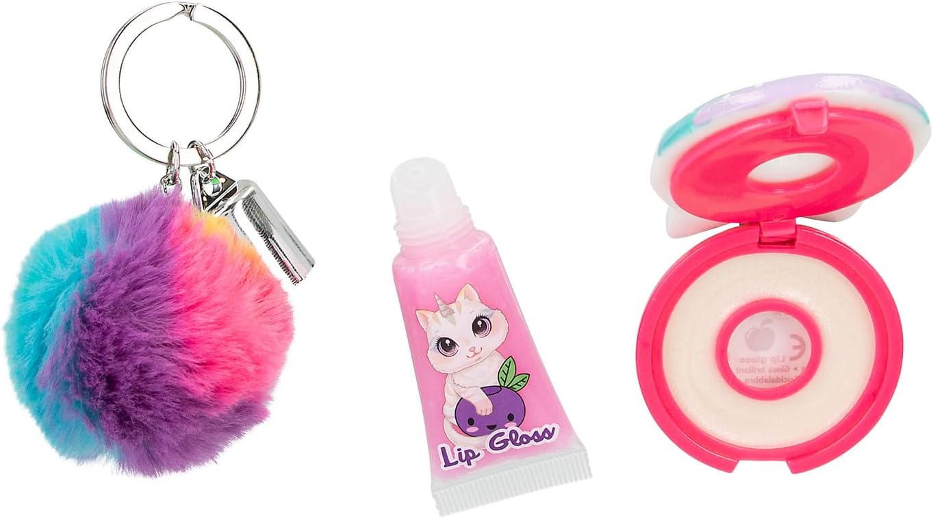 • W zestawie znajduje się przezroczysta pielęgnacja ust w puszce o zapachu jabłka i różowy błyszczyk do ust w tubce o zapachu jagodowym