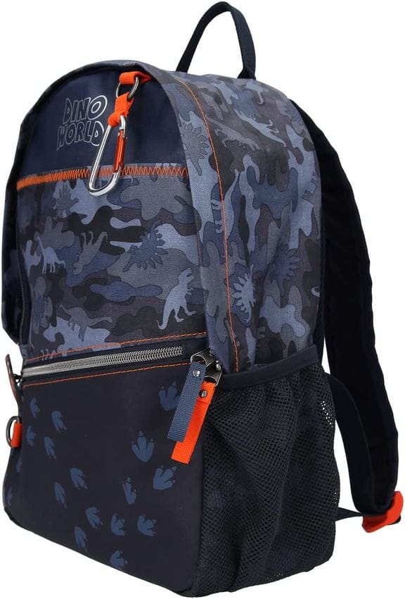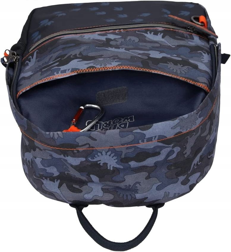 • Fajny wzór dinozaura w kolorze ciemnoniebieskim i pomarańczowym, z uchwytem T-Rex