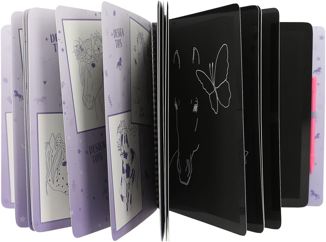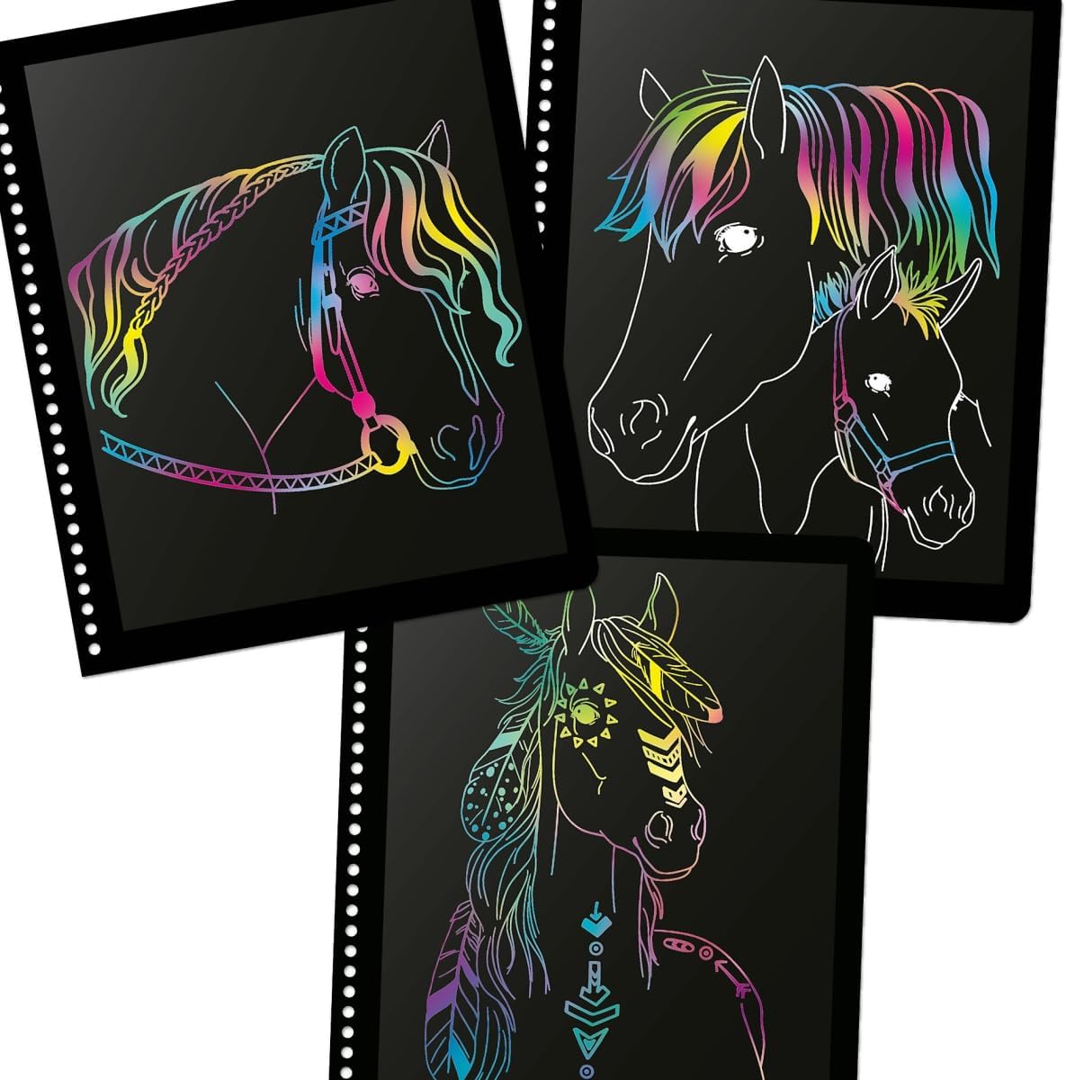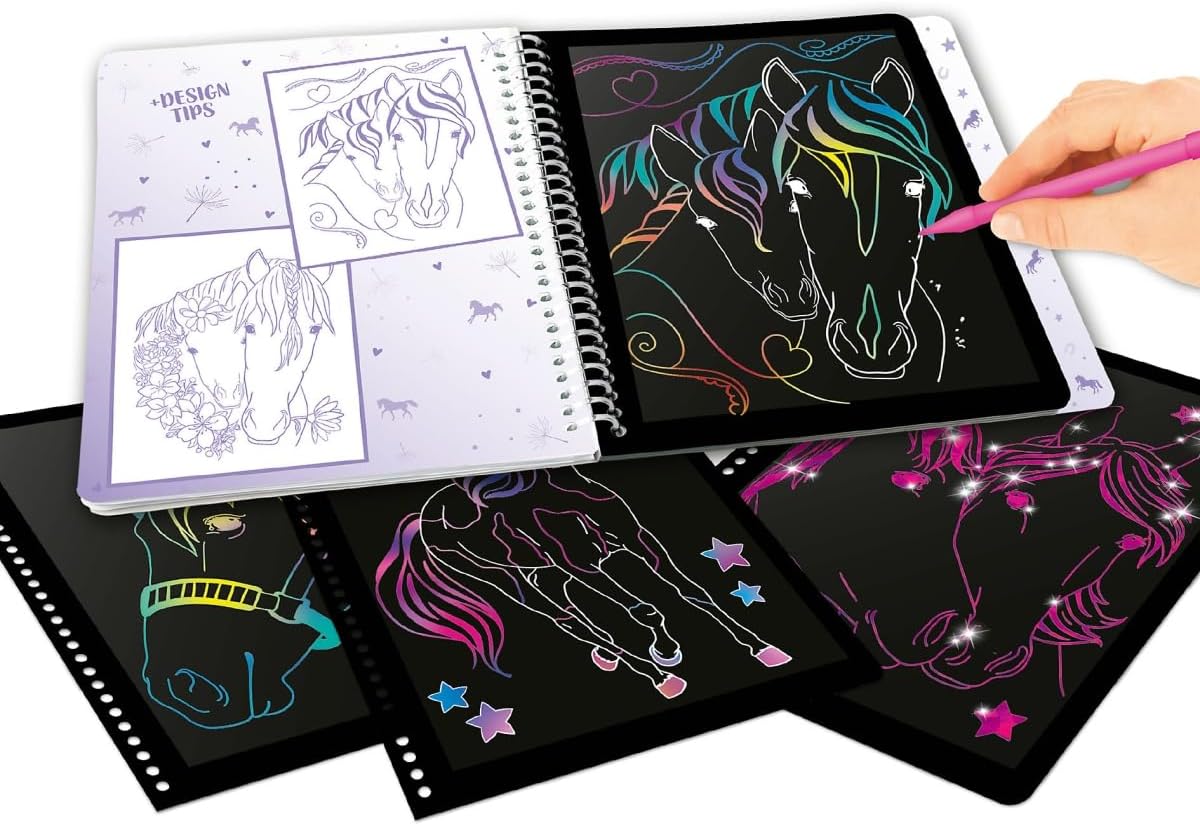 • Kreatywna książka z magicznymi motywami drapania koni, z ciemną powłoką i kolorowym gradientem