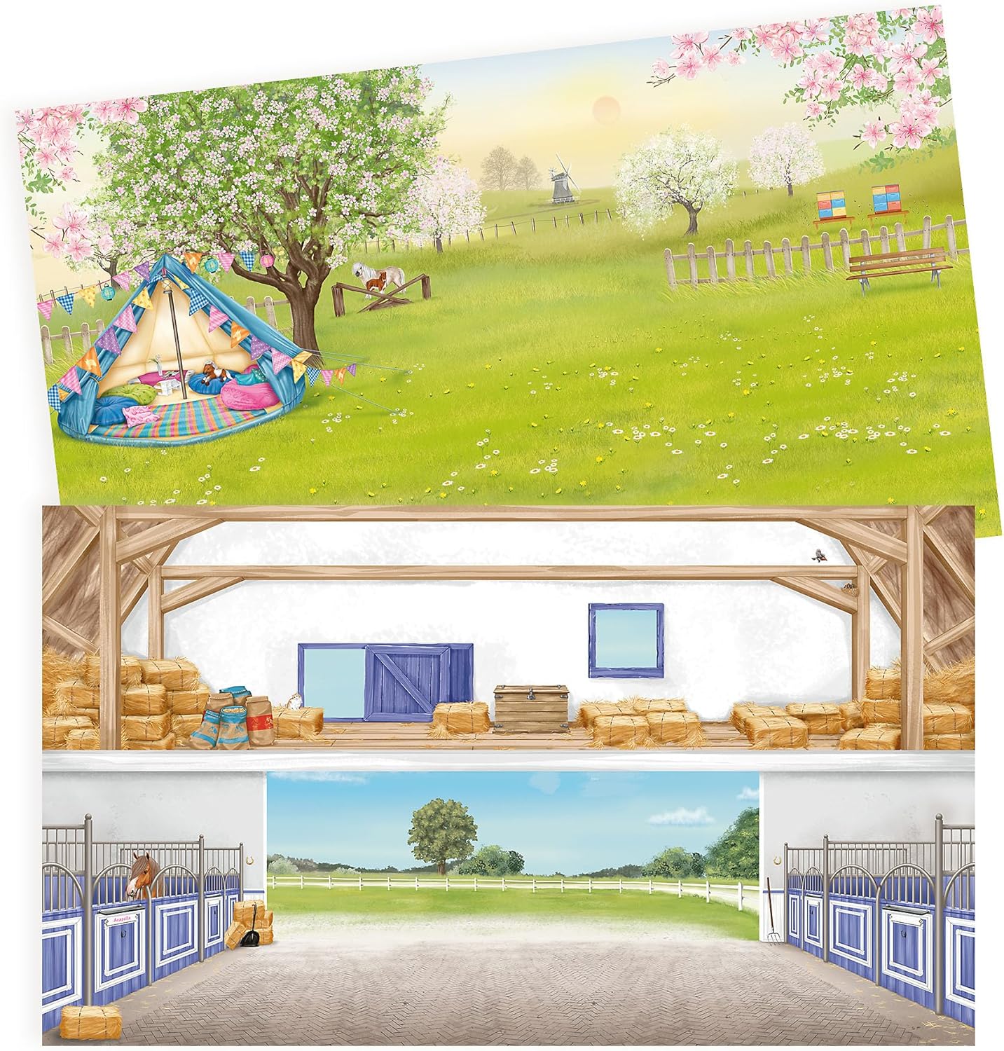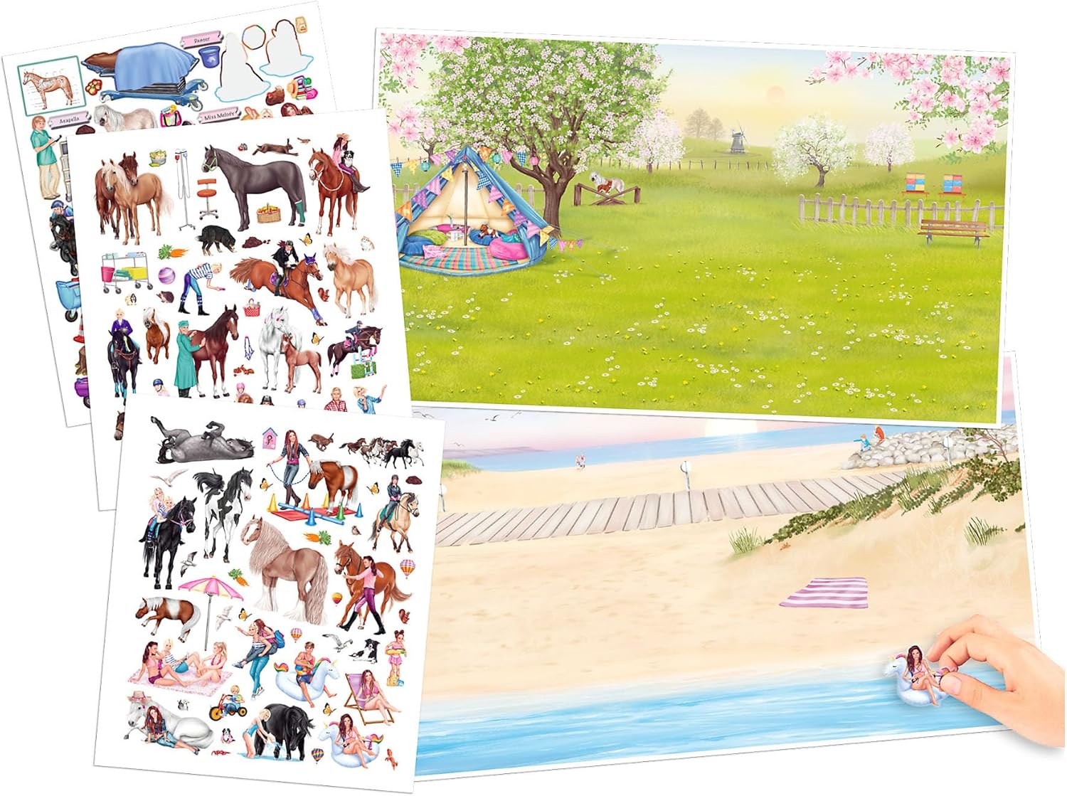 Dzięki książce z naklejkami w stylu Miss Melody dziewczęta mogą puścić wodze fantazji i stworzyć własny świat. Liczne pięknie ilustrowane i fantazyjnie zaprojektowane tapety zapewniają radość z naklejania z przyjaciółmi i rodziną. Książka zawiera 3 arkusze naklejek z pięknymi koniami i akcesoriami, za pomocą których można indywidualnie zaprojektować i uzupełnić scenariusze. Wysokiej jakości zeszyt do malowania ma ok. 29 x 25 x 0,7 cm i nadaje się do kreatywnego spędzania wolnego czasu.