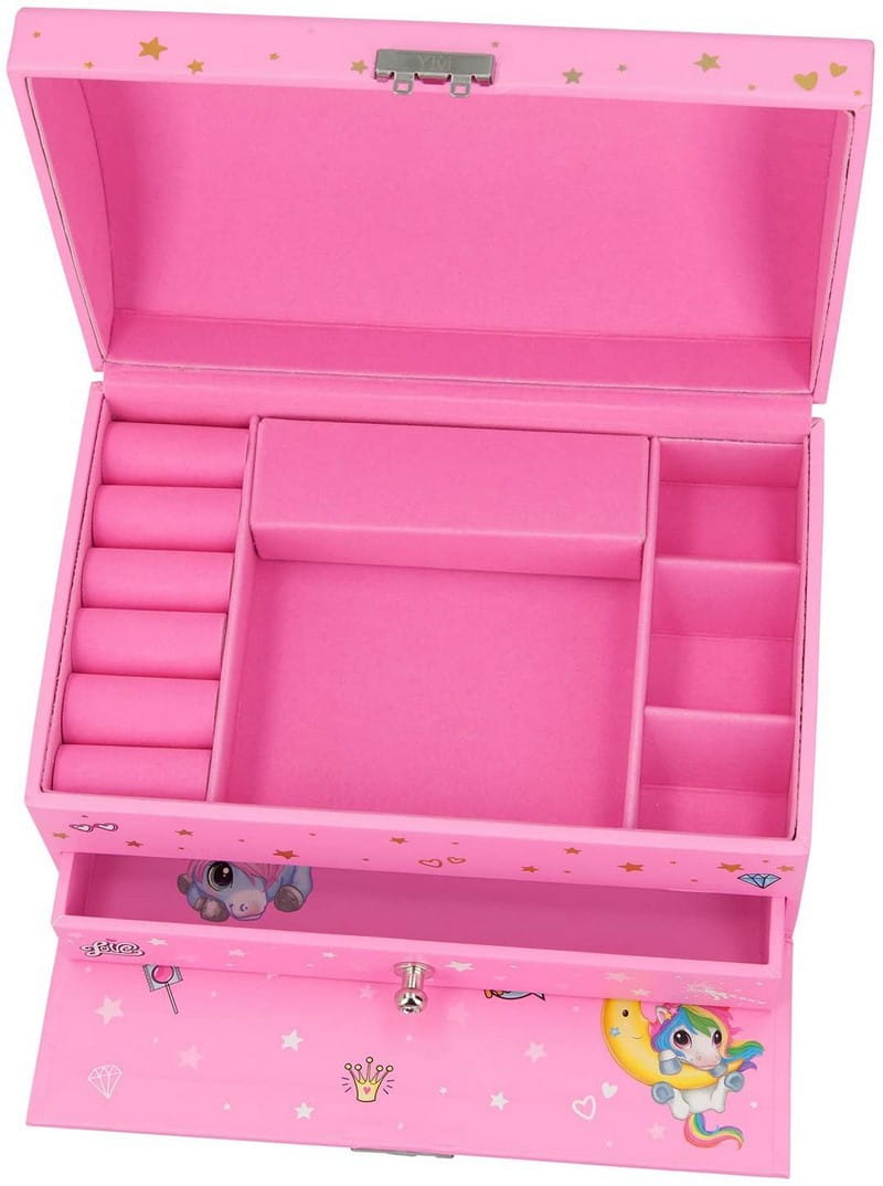 • Z szufladą, miejscem na pierścionki i 4 różnymi przegródkami