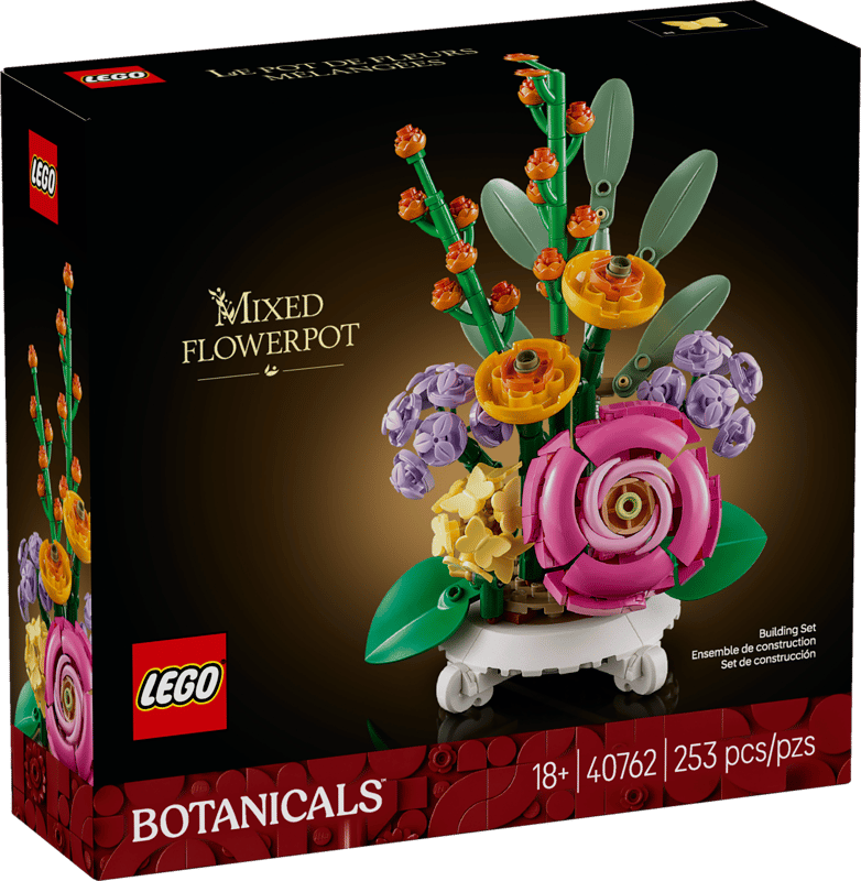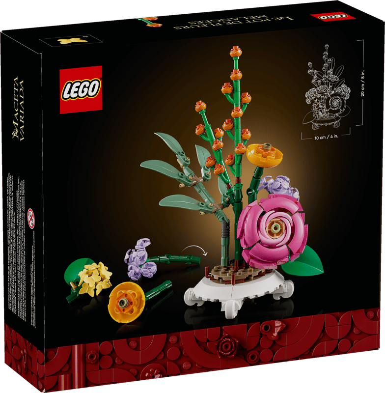 Pielęgnuj swoją kreatywność niczym kwiaty i zbuduj piękny zestaw dla dorosłych LEGO® Botanicals Doniczka z rozmaitymi kwiatami. Zawiera on kolekcję delikatnych kwiatów i elegancką doniczkę. Zestaw będzie świetnym pomysłem na prezent dla dorosłych początkujących florystów, którzy będą się świetnie bawić, budując kwiaty, a następnie układając je w wyjątkową kompozycję. Kwiaty można ustawić samodzielnie lub połączyć z zestawem LEGO Botanicals Kwiatowa kompozycja (10345) (sprzedawanym osobno).