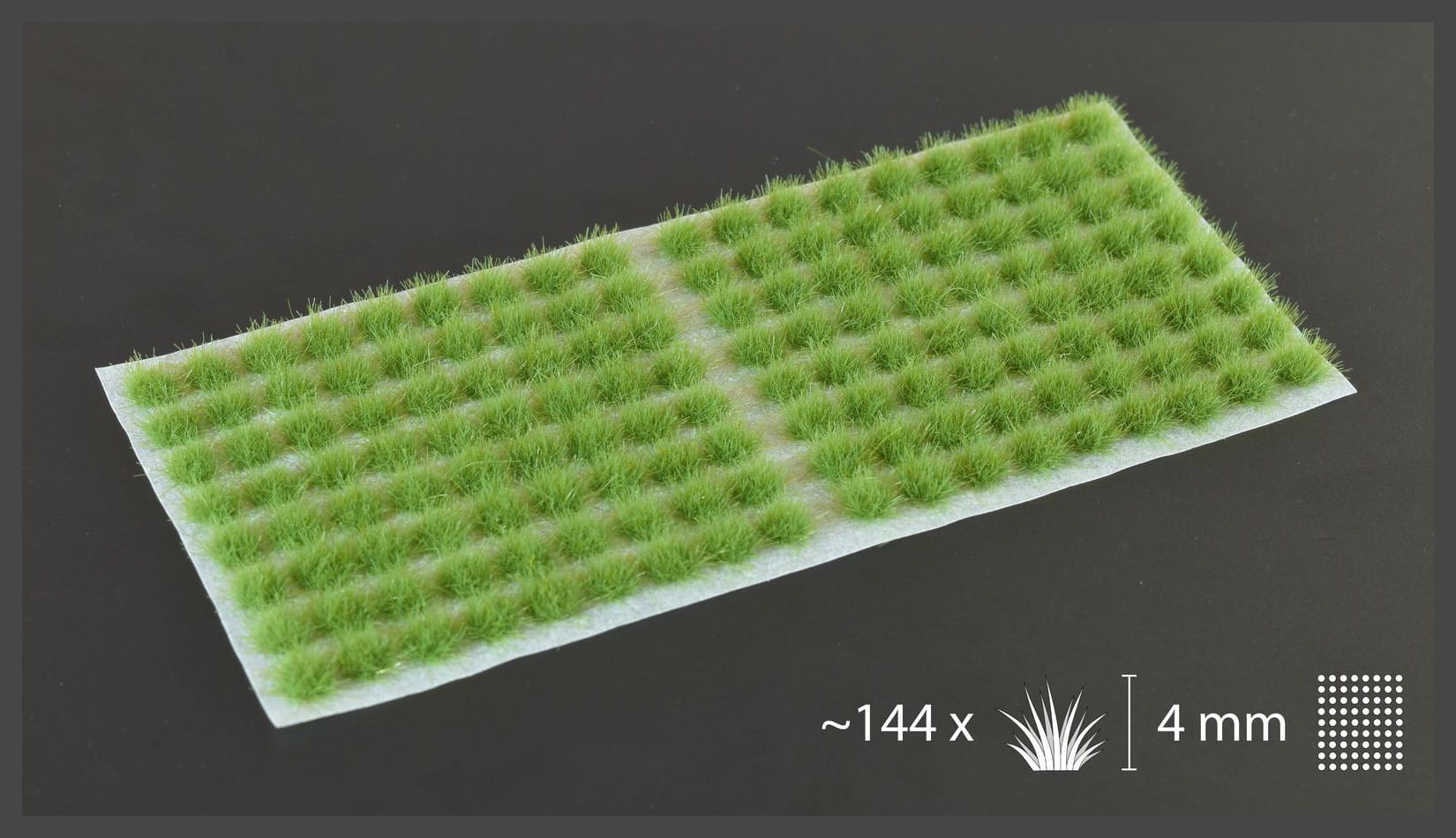Jeden arkusz Green Small ma wymiary 14,5 cm x 6,5 cm. Zawiera 144 kępki, które mają 4mm wysokości.