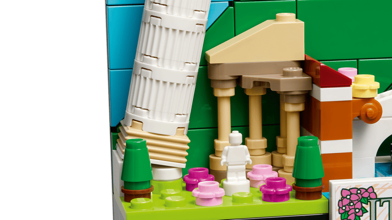 Odwzoruj niektóre z najbardziej kultowych włoskich atrakcji turystycznych dzięki zestawowi LEGO® z pocztówką do zbudowania. Ten wyjątkowy prezent dla podróżników przedstawia Krzywą Wieżę w Pizie, rzymskie ruiny, most Rialto w Wenecji oraz malownicze miasto Positano na wybrzeżu Amalfi. Dzieci w wieku od 9 lat mogą wybrać jedną z dwóch płytek z naklejkami z napisem „Italy” lub „Italia” i umieścić ją z przodu pocztówki. Ta kolekcjonerska pocztówka z pewnością spodoba się miłośnikom Włoch lub osobom, które marzą o podróży do tego kraju.