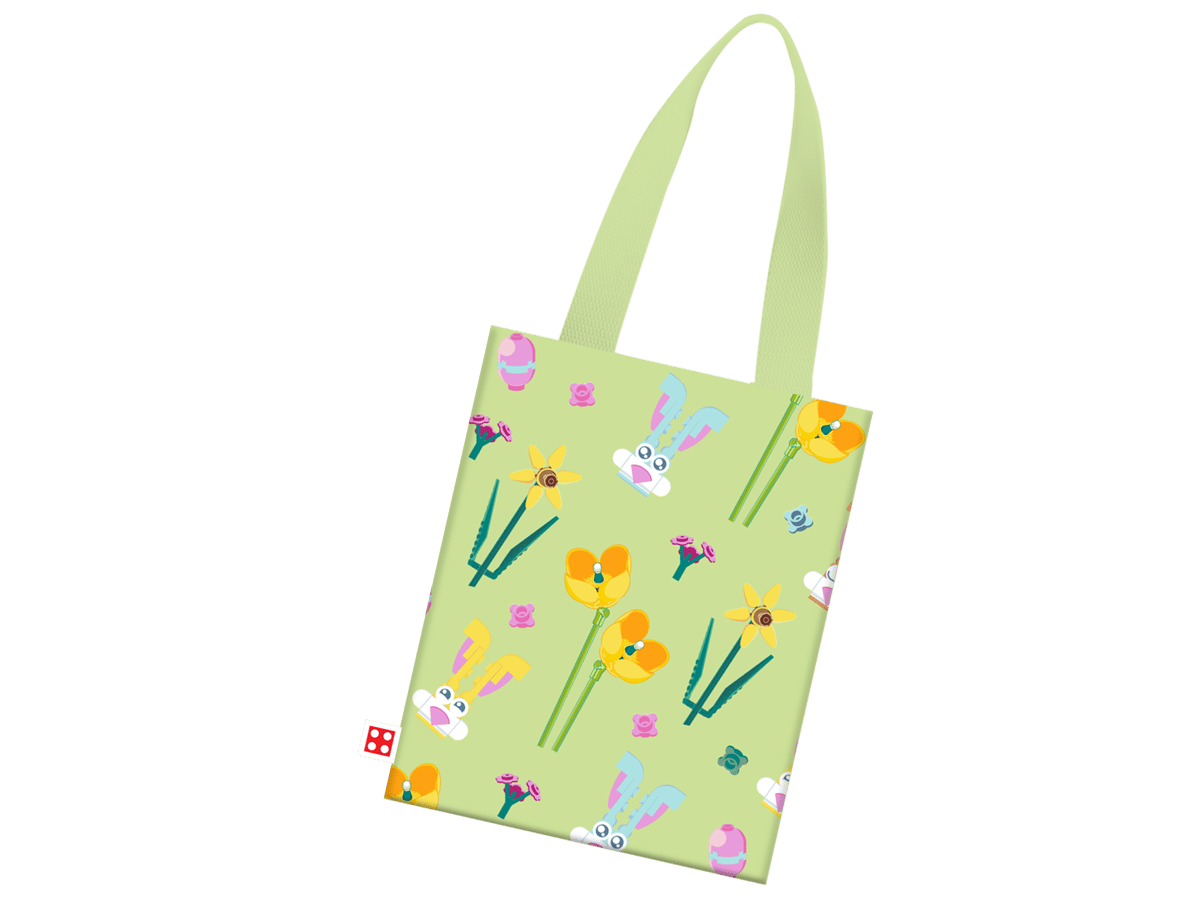 Prezent na Wielkanoc dla dzieci w wieku od czterech lat i fanów LEGO® — ta świąteczna, uniwersalna torba ma nadrukowane grafiki z pisankami LEGO, zajączkami i wiosennymi kwiatami