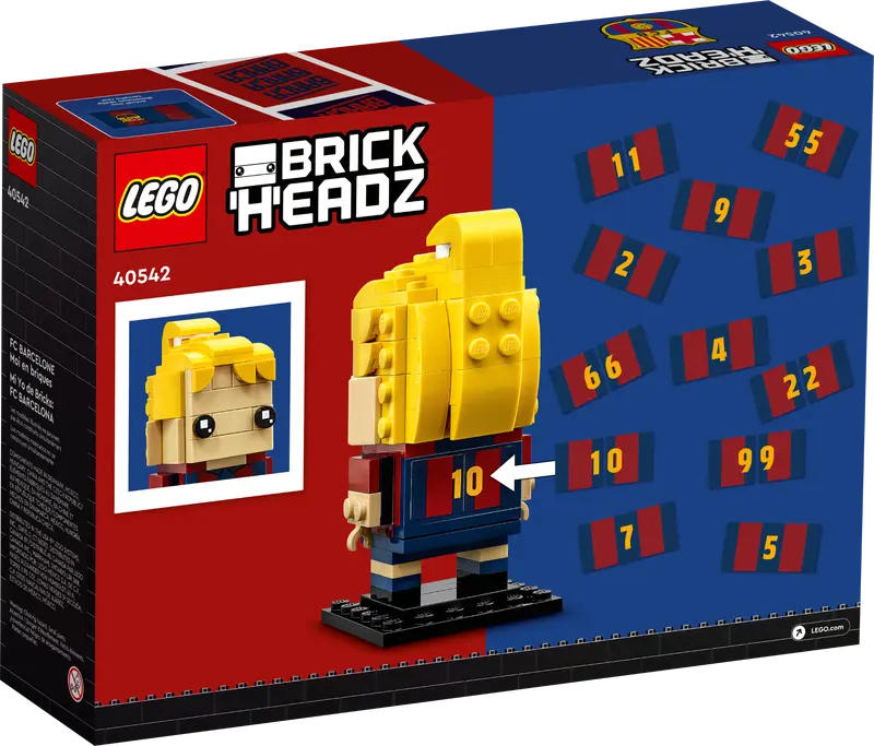 Dołącz do grona zawodników FC Barcelony jako model LEGO® BrickHeadz™ — dzieci w wieku od dziesięciu lat mogą zbudować model samych siebie w barwach jednego z największych klubów piłkarskich na świecie