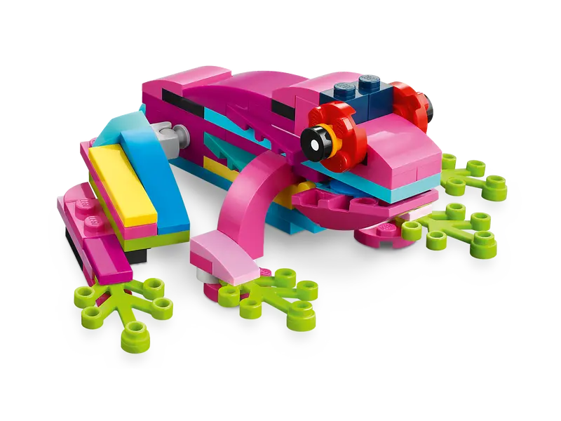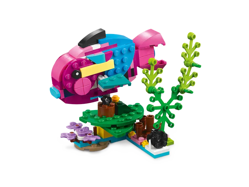 Zestaw 3 w 1 umożliwia dzieciom zbudowanie trzech różnych egzotycznych zwierząt. Mogą stworzyć kolorową papugę siedzącą na gałęzi lub zmienić ją w rybę morską albo żabkę z ruchomymi nogami.