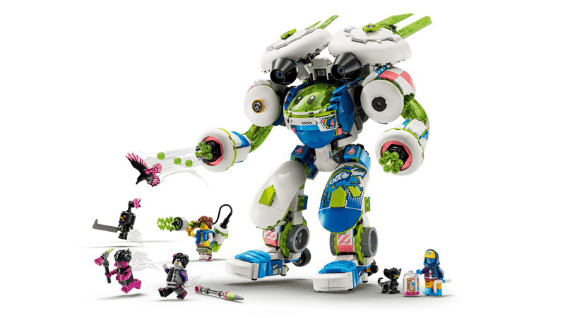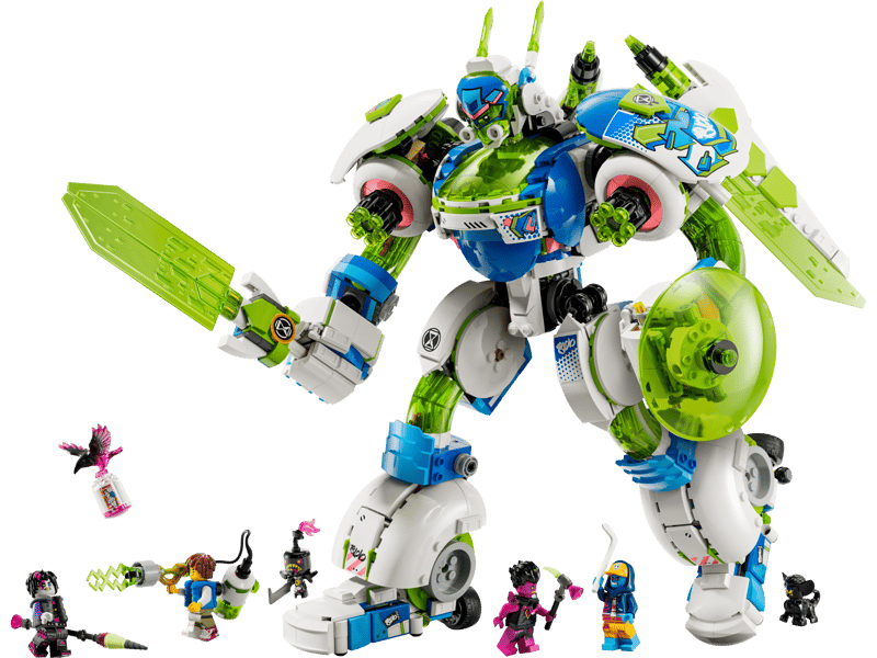 Zestaw urozmaicają cztery minifigurki LEGO DREAMZzz Mateo i Logana oraz ich mrocznych sobowtórów MadTeo i Dogana, a także figurki złych sługusów Sneaka i Snivela. Zabawkowy robot zawiera instrukcje budowania z fabułą, zachęcające dzieci do wzięcia udziału w przygodzie i zostania bohaterami w Świecie Snów.
