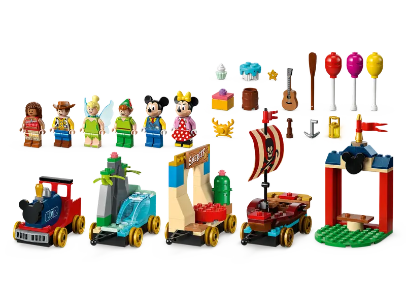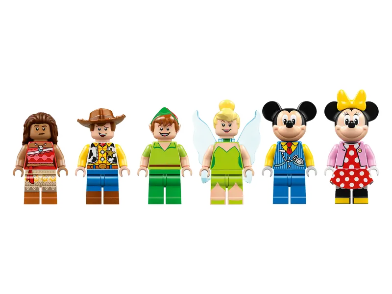 Oczaruj młodych fanów pociągów w wieku od czterech lat tą niesamowicie interesującą zabawką. Zestaw LEGO® ǀ Disney: Disney — pociąg pełen zabawy (43212) zawiera stację, lokomotywę, trzy platformy i sześć minifigurek LEGO: Myszkę Miki, Myszkę Minnie, Vaianę, Piotrusia Pana, Dzwoneczka i Chudego. Ty i Twoje dzieci możecie cieszyć się intuicyjnym budowaniem dzięki aplikacji LEGO Builder, która zawiera narzędzia do powiększania i obracania, dzięki czemu maluchy mogą wizualizować model podczas budowania.