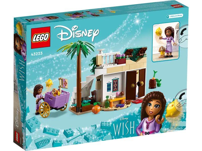 Zainspiruj dzieci i fanów Disneya w wieku od sześciu lat do zbudowania zestawu LEGO® ǀ Disney Asha w Rosas (43223) z nadchodzącego filmu Walt Disney Animation Studios Życzenie. Zestaw zawiera targowisko ze schodami i balkonem, zaplecze ze stołem, wózek, minilaleczkę LEGO ǀ Disney i dwie figurki LEGO ǀ Disney. Ten zestaw wzmacnia poczucie pewności siebie u dzieci, zachęcając do kreatywnego opowiadania historii i zabawy. Można go też dodać do innych zestawów konstrukcyjnych LEGO ǀ Disney z tej serii (43224 i 43231, sprzedawane osobno), aby zabawa była jeszcze fajniejsza. Dzieci mogą też korzystać z łatwego i intuicyjnego narzędzia w aplikacji LEGO Builder. Mogą w niej powiększać i obracać modele w 3D, zapisywać zestawy i śledzić swoje postępy.