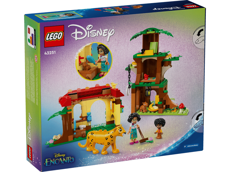 Gdy fani filmu Nasze magiczne Encanto w wieku od sześciu lat otworzą zestaw Rezerwat zwierząt Antonia (43251), czeka na nich magiczna zabawa. Od budynku rezerwatu po trzypoziomowe drzewo — ten szczegółowy zestaw konstrukcyjny LEGO® ǀ Disney zachęca do kreatywności i rozwijania wyobraźni. Oprócz mikrolaleczki LEGO ǀ Disney Antonia i minilaleczki LEGO ǀ Disney Mirabel zestaw zawiera pszczołę wydrukowaną na płytce, jaguara Parce’a, dwa ptaki, motyla, kapibarę, żabę i węża, które zamieszkują rezerwat i drzewo.