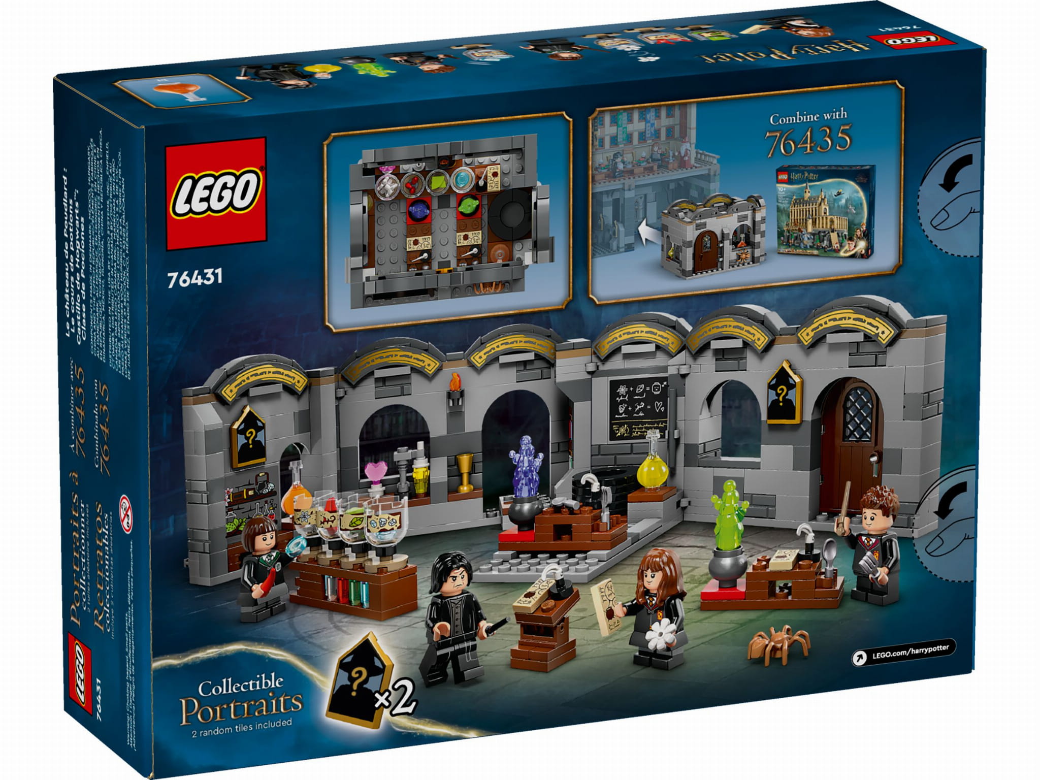 Dzięki temu czarodziejskiemu zestawowi LEGO® Harry Potter™ (76431) dla dzieci w wieku od ośmiu lat młodzi czarodzieje, czarownice i mugole™ mogą teraz dołączyć do zajęć z eliksirów w zamku Hogwart™. Zestaw zawiera klasę do zbudowania, którą można otworzyć, aby ułatwić zabawę. Jest ona pełna realistycznych detali: zawiera tablicę z instrukcjami przygotowywania eliksirów, fiolki ze składnikami eliksirów do mieszania w kociołku i inne akcesoria inspirujące do kreatywnej zabawy. W zestawie są takżedwa z 14 kolekcjonerskich portretów Hogwartu oraz minifigurki LEGO profesora Severusa Snape’a™ i uczniów: Hermiony Granger™, Pansy Parkinson i Seamusa Finnigana, dzięki którym można odtwarzać historie ze świata Harry’ego Pottera.