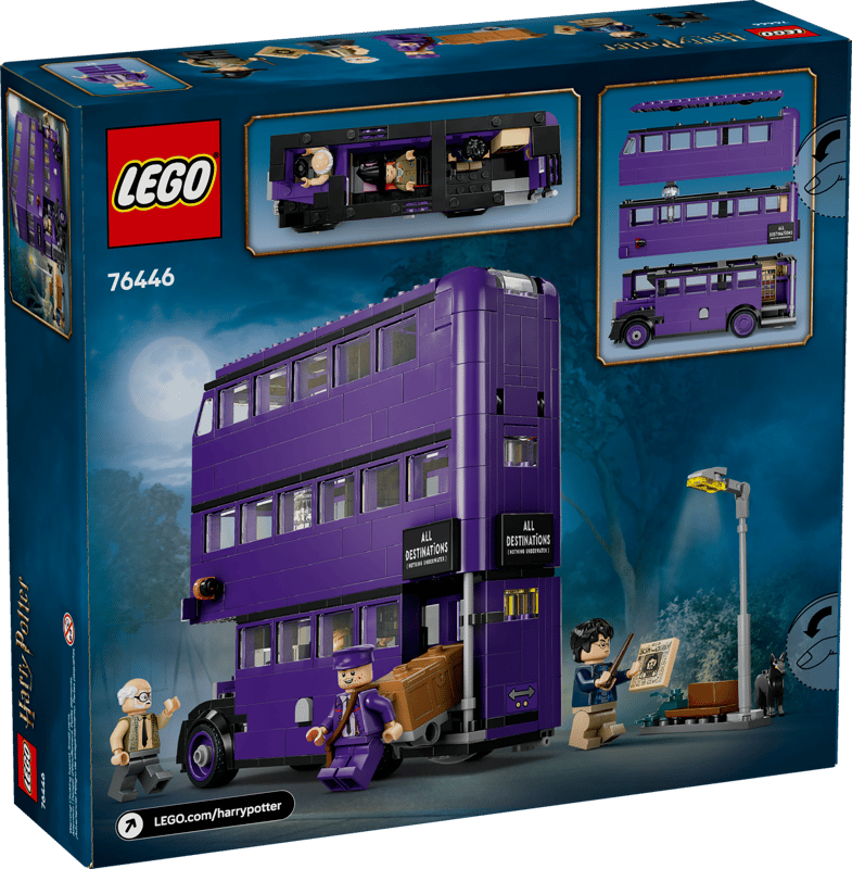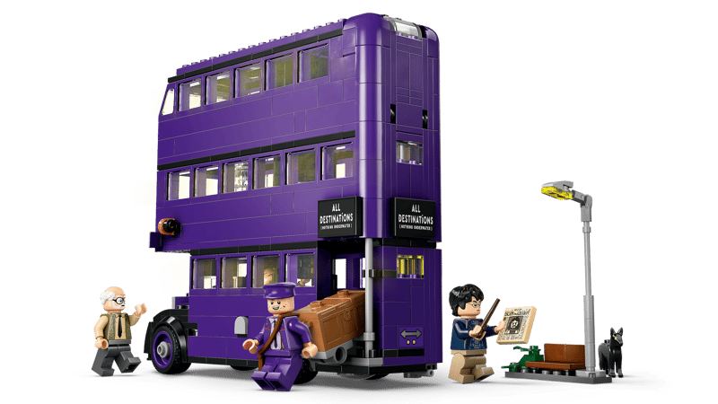 Ten magiczny zestaw zawiera również pięć postaci LEGOHarry Potter – Harry’ego Pottera, Erniego Pranga, Stana Shunpike’a, śpiącą czarownicę i Łapę™ – dzięki którym odtworzysz niezapomniane sceny z filmu Harry Potter i Więzień Azkabanu™. Możliwości kreatywnej zabawy poszerzają inne realistyczne detale,w tym latarnia, przy której czekał Harry (i przestraszył się Łapy!), zanim przyjechał Błędny Rycerz, kufer Harry'ego i gazeta Prorok Codzienny z nagłówkiem „Ucieczka z Azkabanu”.