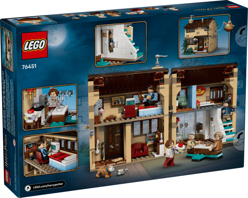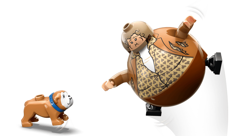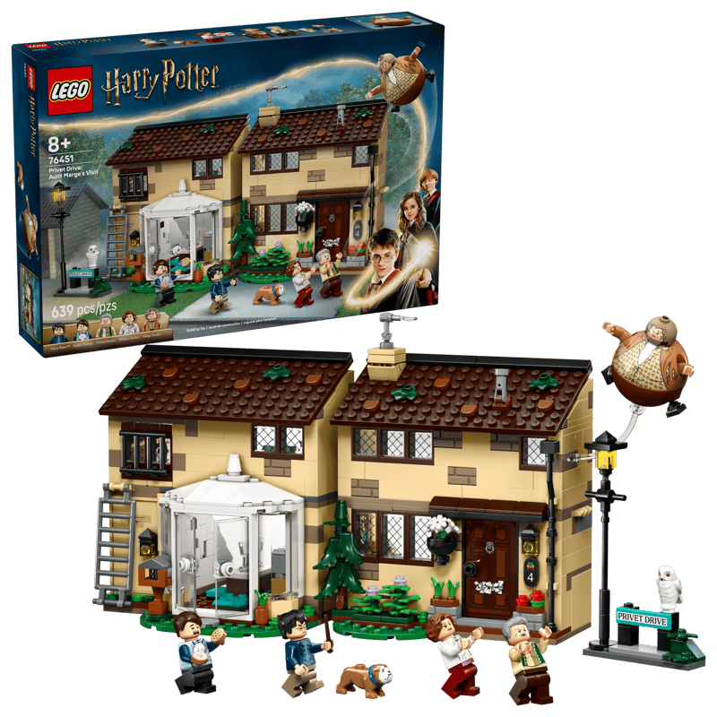Ten magiczny zestaw to doskonały prezent świąteczny lub urodzinowy dla chłopców, dziewczynek i wszystkich fanów w wieku od ośmiu lat. W zestawie znajduje się pięć minifigurek LEGO Harry Potter, figurka psa Majchera oraz figurka nadmuchanej ciotki Marge, by odegrać zabawną scenę zaklęcia. Całość uzupełnia dodatkowy model ze znakiem „Privet Drive” i latarnią.
