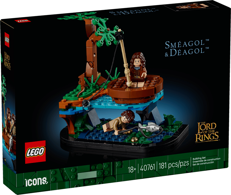 Odwiedź Śródziemie™, budując ten mały dodatek do serii LEGO® Icons Władca pierścieni™ dla fanów epickiej trylogii filmowej. Ten model przedstawia scenę odkrycia Jedynego Pierścienia™ przez Sméagola™ i Déagola, ukazując ją znad i spod lustra wody. Zestaw zawiera obracającą się łódź i akcesoria z filmu, w tym Jedyny Pierścień i akcesoria do wędkowania dla ruchomych minifigurek Sméagola i Déagola™. Odkryj inspirującą serię zestawów LEGO dla dorosłych (sprzedawanych osobno).