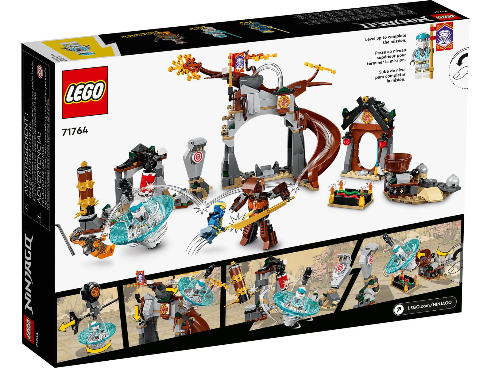 W zestawie Akademia wojowników Ninja (71764) znajdziesz wszystko, czego fani NINJAGO® w wieku od 7 lat potrzebują, by pomóc swoim bohaterom opanować sztukę Spinjitzu. Imponujący zestaw oferuje różne wyzwania dla ninja, w tym zjeżdżanie po zjeżdżalni, przeskakiwanie nad dołem z wężami i walkę z manekinem szkoleniowym.