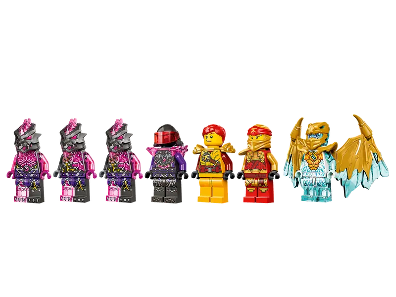 Ten zestaw konstrukcyjny zawiera siedem minifigurek: złotego Kaia, złotego smoczego Zane’a ze skrzydłami złotego smoka, ich sojuszniczkę Skylor oraz złoczyńców do odgrywania walk — generała Pana F, niszczyciela Kamienia Zemsty i dwóch wojowników Kamienia Zemsty.