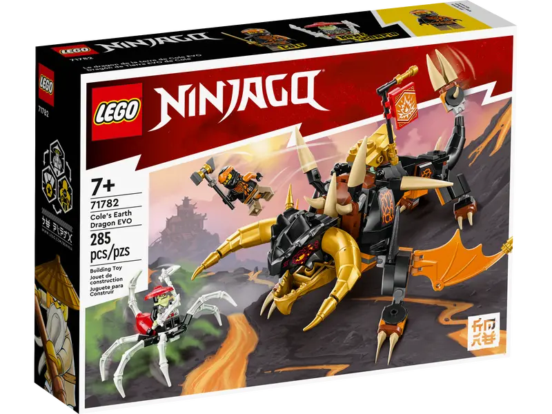 Dzieci w wieku od siedmiu lat będą zachwycone możliwością rozgrywania pasjonujących bitew dzięki temu zestawowi LEGO® NINJAGO® Smok Ziemi Cole'a EVO (71782). Podczas zabawy dzieci mogą ulepszyć ruchomego smoka, aby był jeszcze większy i potężniejszy, dodając złote skrzydła, rogi i ogon.