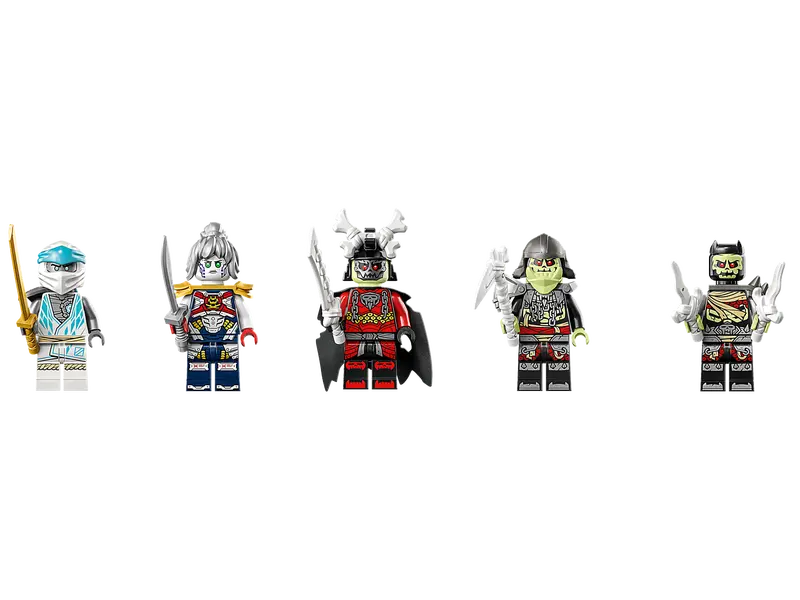 Zestaw zawiera pięć minifigurek: Zane'a i Pixala z mieczami, aby rozegrać walki ze złoczyńcami: królem-szkieletem, rycerzem-szkieletem i wojownikiem-szkieletem, z których każdy ma broń. To nikczemne trio ma też zbudowaną z cegły świątynię, wokół której mogą się zebrać.