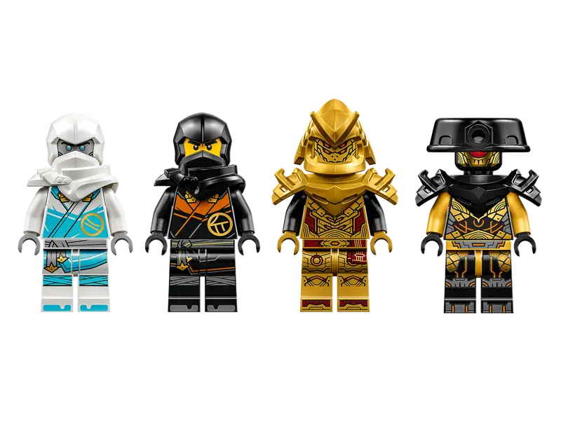 Ten zestaw z samochodem ninja zawiera cztery minifigurki: wojowników ninja, Zane'a i Cole'a, uzbrojonych w dwie katany, komandora obrony imperium, imperialnego łowcę szponiastych oraz droida imperialnego. Komandor ma miecz imperialny, a łowca szponiastych ma elektryczny kostur. Obaj przemieszczają się na fajnych latających deskach. W innych zestawach NINJAGO są dwa elementy mocy niebieskiego smoka, a dzieci mogą zebrać jeszcze cztery w różnych kolorach.